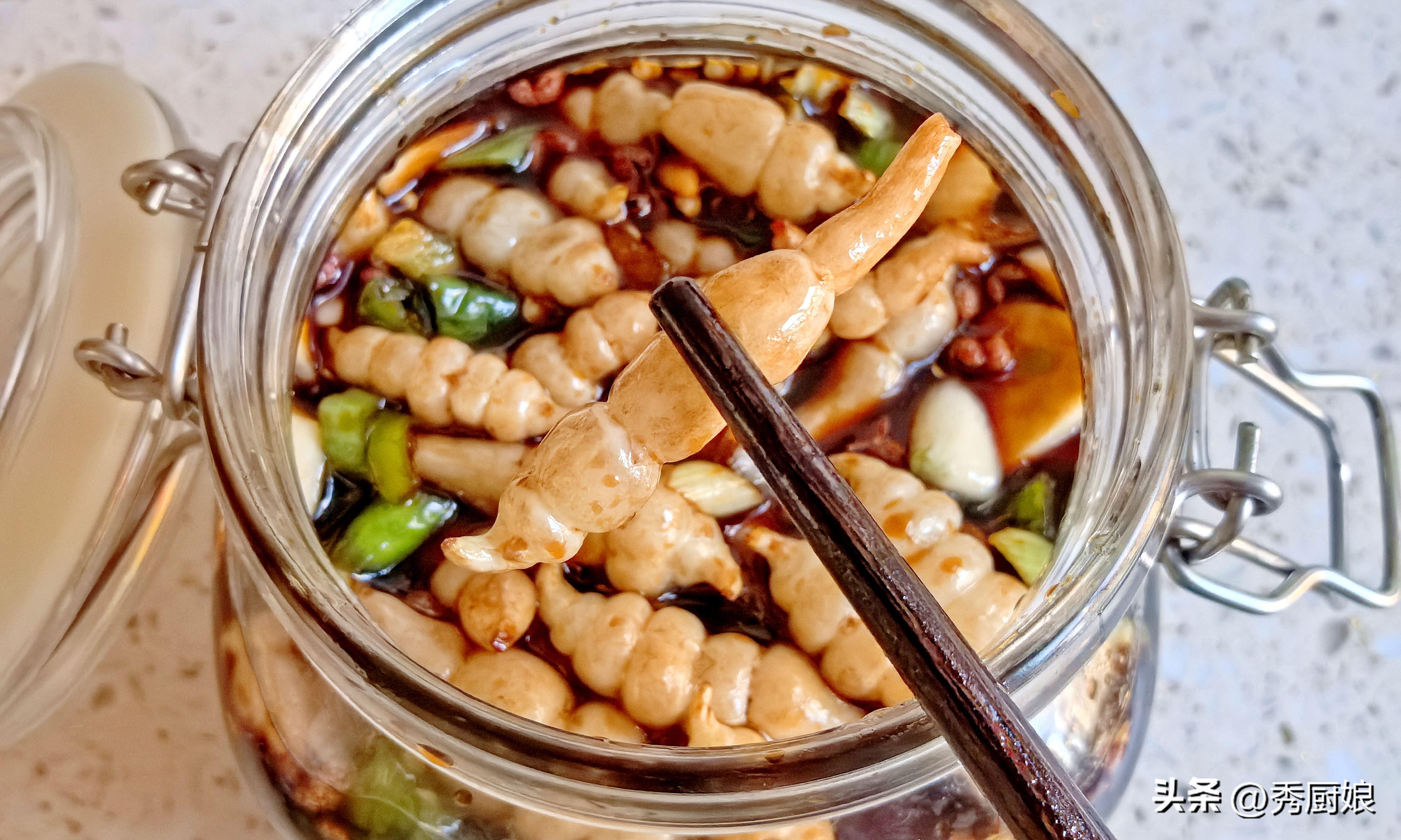 小貼士:整個製作過程容器和食材都不能沾生水或油,不然容易變質。醃好的地環鹹鮮酸甜,是佐餐的極品小菜。