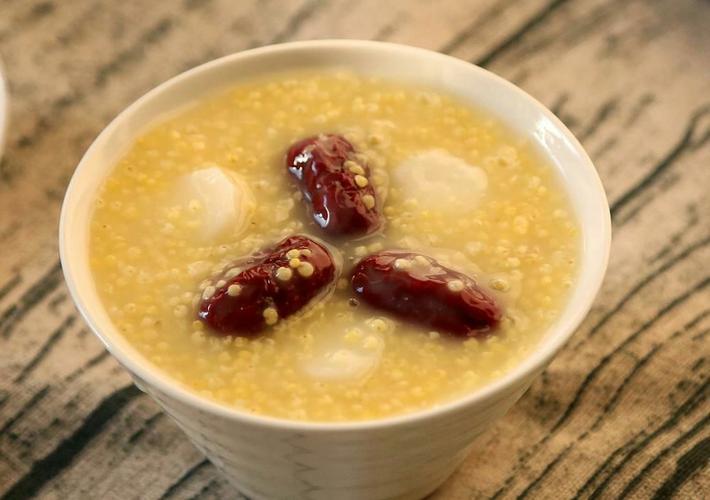 食材:山藥 200 克、紅棗 10 顆、小米米 100 克、冰糖適量。