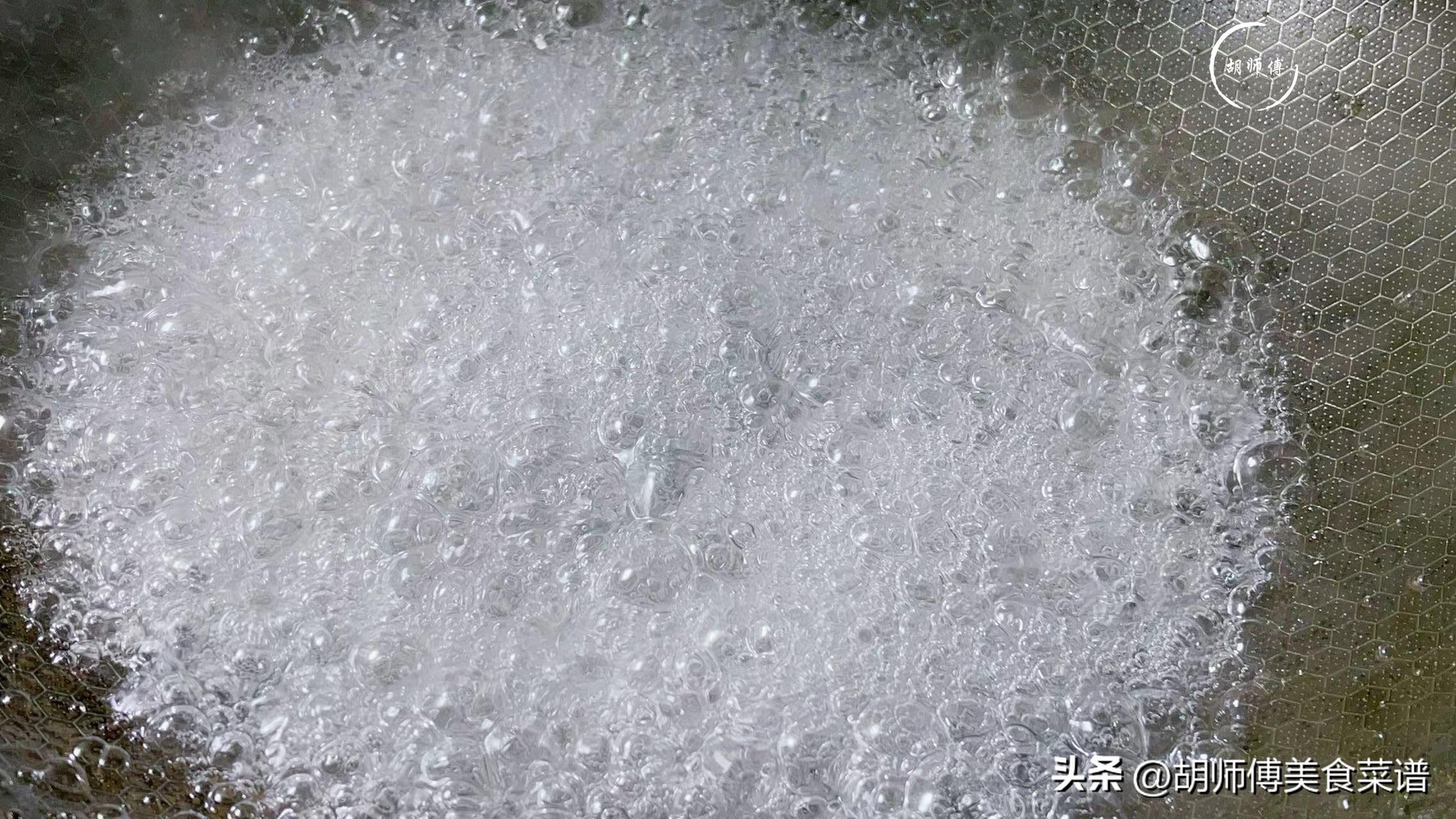 第三步:鍋中放入一碗水,然後將冰糖放入水中,接着開中火不斷攪拌的冰糖,直到冰糖完全煮融化就可以了。