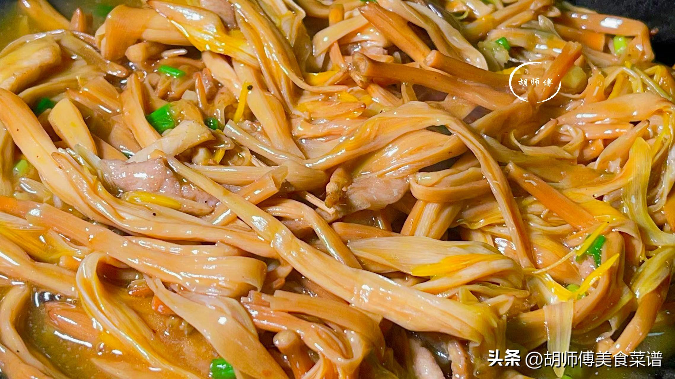 【食材準備】:幹黃花菜200克、瘦肉100克、生抽、薑末、食鹽、水澱粉、食用油、陳醋適量。