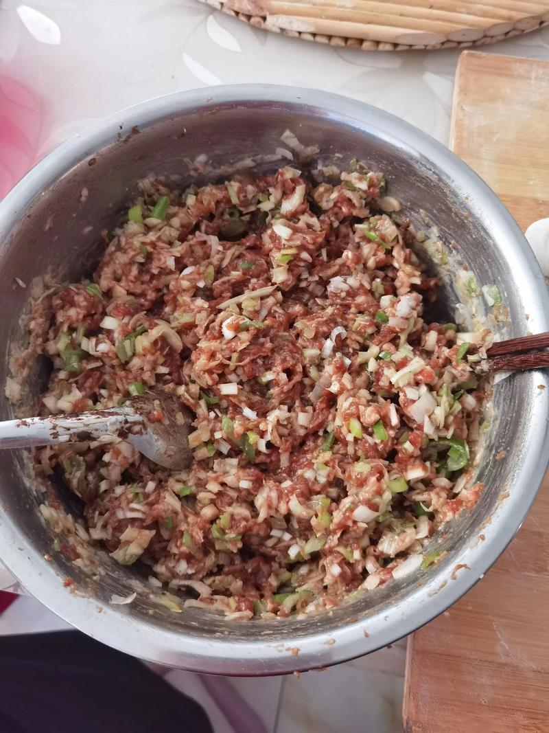 豬肉最好選擇肥瘦相間的五花肉,剁成肉餡後加入適量的蔥花、薑末、生抽、料酒、鹽、香油等調料攪拌均勻,再放入擠幹水分的白菜,攪拌時順着一個方向,讓餡料更加勁道。