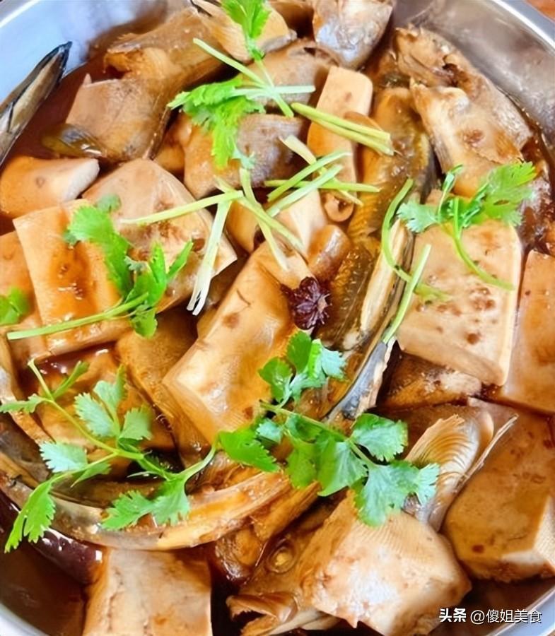 我們家離海不遠,喫魚是常事,辮子魚刺少肉嫩,最適合燜着喫。老媽先把魚煎到兩面金黃,再和切塊的豆腐一起下鍋。只加蔥薑蒜、生抽和一點點糖,加水慢慢燜。“火候得掌握好,”她說,“魚要入味,豆腐要嫩,還不能把魚燉散了。”