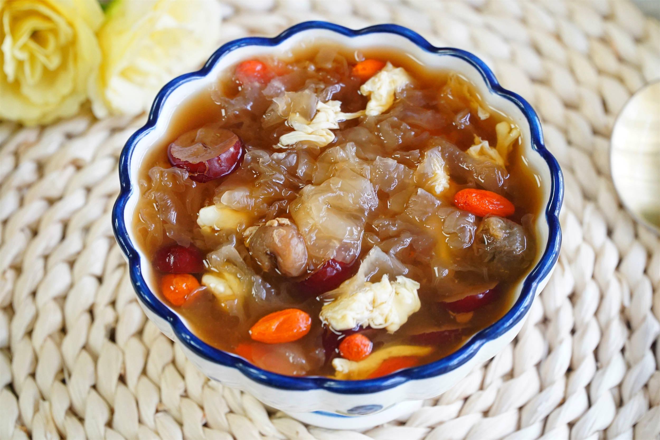 推薦喫法, 大棗銀耳桂圓湯。既能暖身又能補血。做好的湯,香甜軟糯,滋潤養顏,是四九時節女性美容養顏的祕密武器,喝上一口,從胃裏暖到心裏。