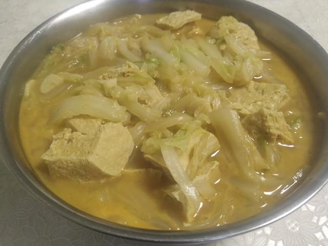 食材:白菜半個,豆腐1塊,鹽, 豆瓣醬,生抽,胡椒粉