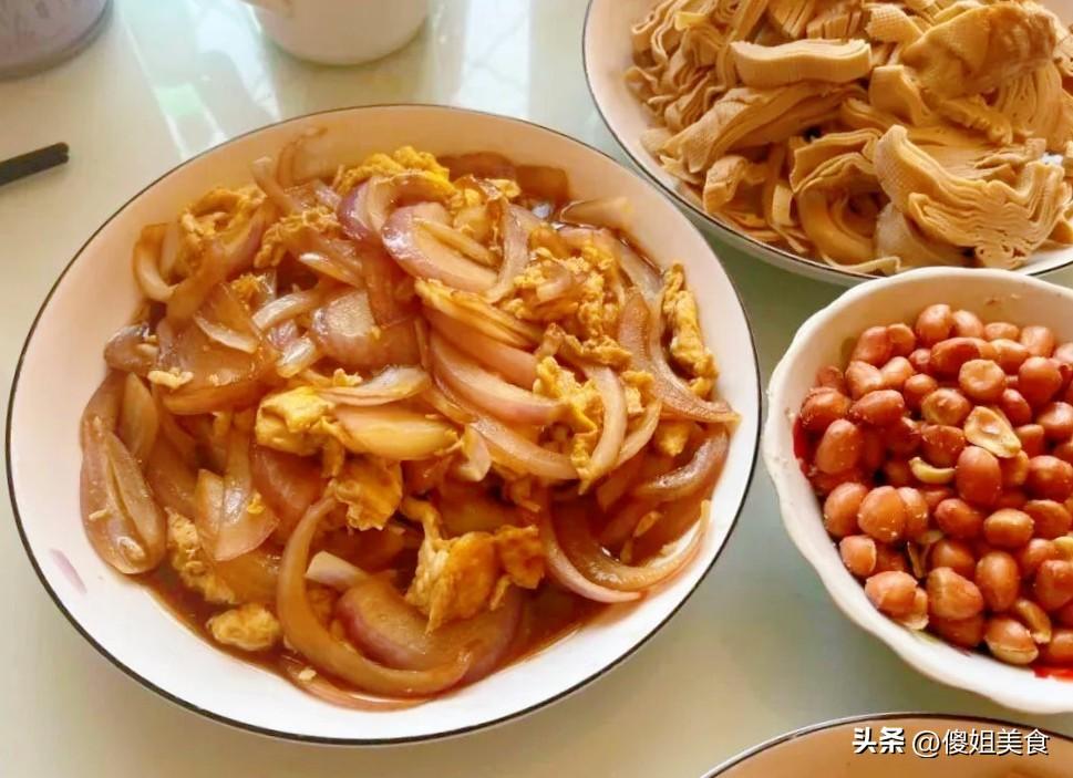 洋蔥絲切得均勻細長,雞蛋炒得蓬鬆金黃,先盛出來。然後再用底油把洋蔥絲炒到微微透明,邊緣有點焦黃,香甜味完全被逼出來的時候,再把雞蛋倒回去,快速翻炒兩下,加點鹽就出鍋。整個過程乾脆利落。成菜色澤金黃,洋蔥脆甜,雞蛋軟嫩,喫起來特別舒服,是那種樸素卻百喫不厭的好味道。