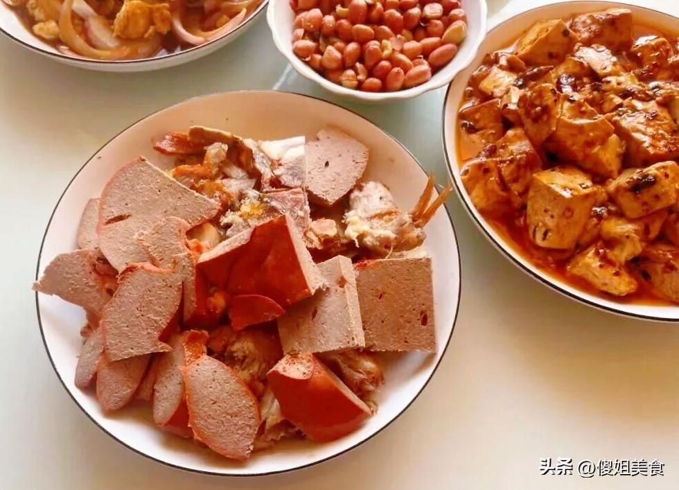 旁邊還有一盤素炒豆腐卷。豆腐卷是我們這邊的豆製品,有點像厚的千張,切成絲簡單一炒,只放點鹽和生抽調味,口感清爽,豆香濃郁,正好可以平衡一下其他菜的濃郁。