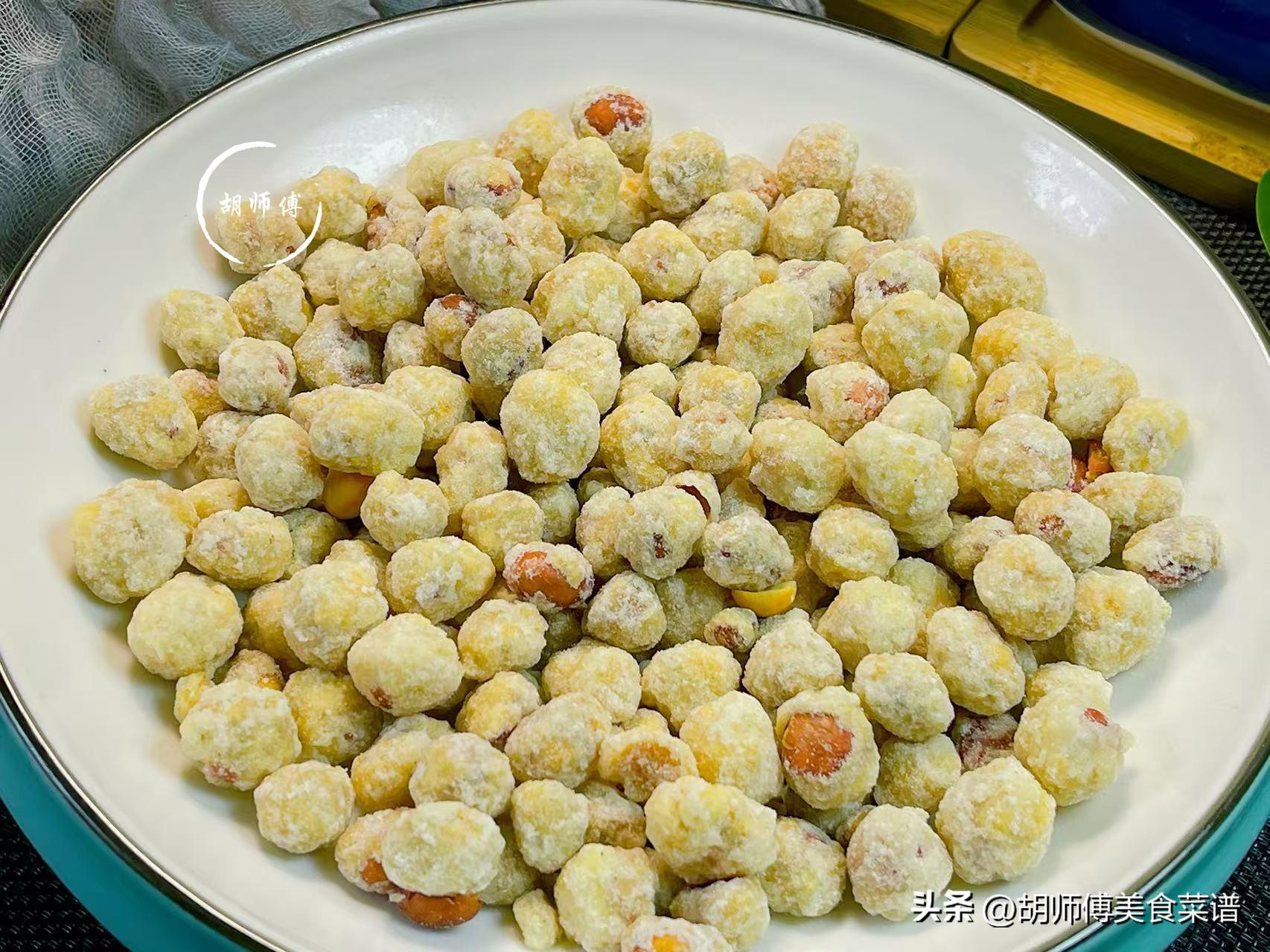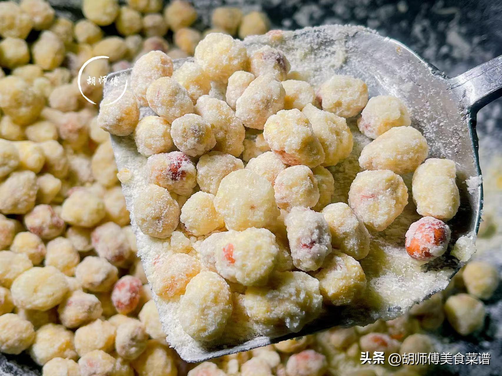 【食材準備】:花生500克、澱粉100克、麪粉100克、白砂糖300克、食用油適量。