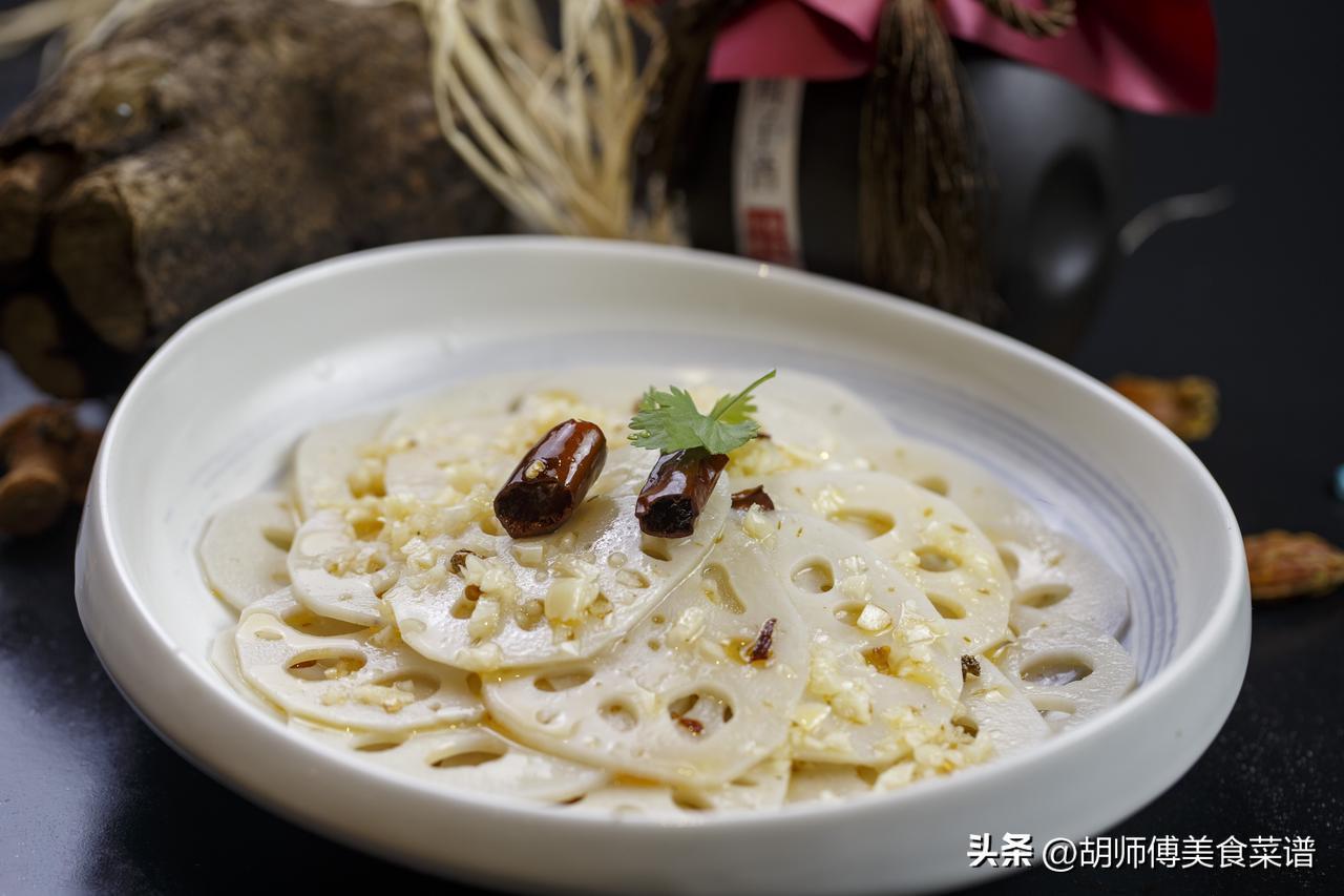 【食材準備】:蓮藕1節、蒜末5克、米醋5ml、香油、食鹽、幹辣椒、食用油適量。