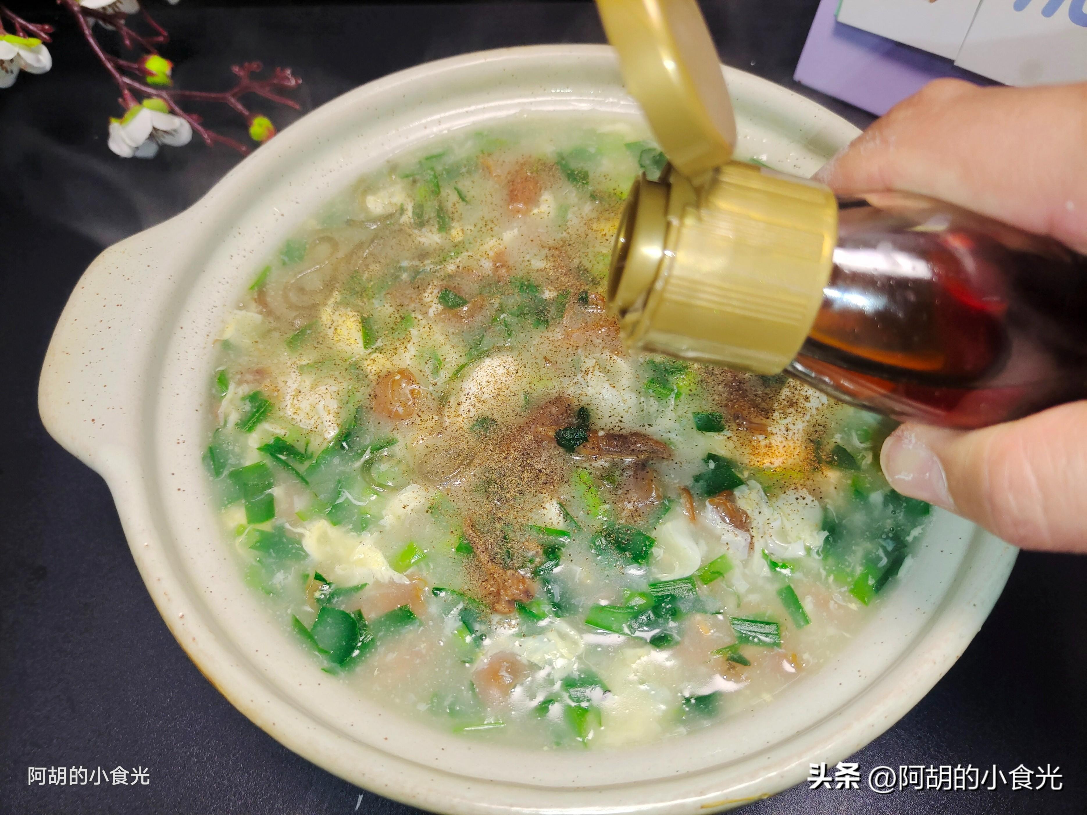 第六步:出鍋後還沒有完,再撒入一些黑胡椒粉和芝麻香油,喝的時候簡單拌勻就可以了。鮮爽又開胃的一道羹湯,好喝又好做,作爲餐前一碗開胃湯還是很不錯,天冷的時候來一碗熱乎乎的還能調動好味口,感興趣的可以試一試這個做法。