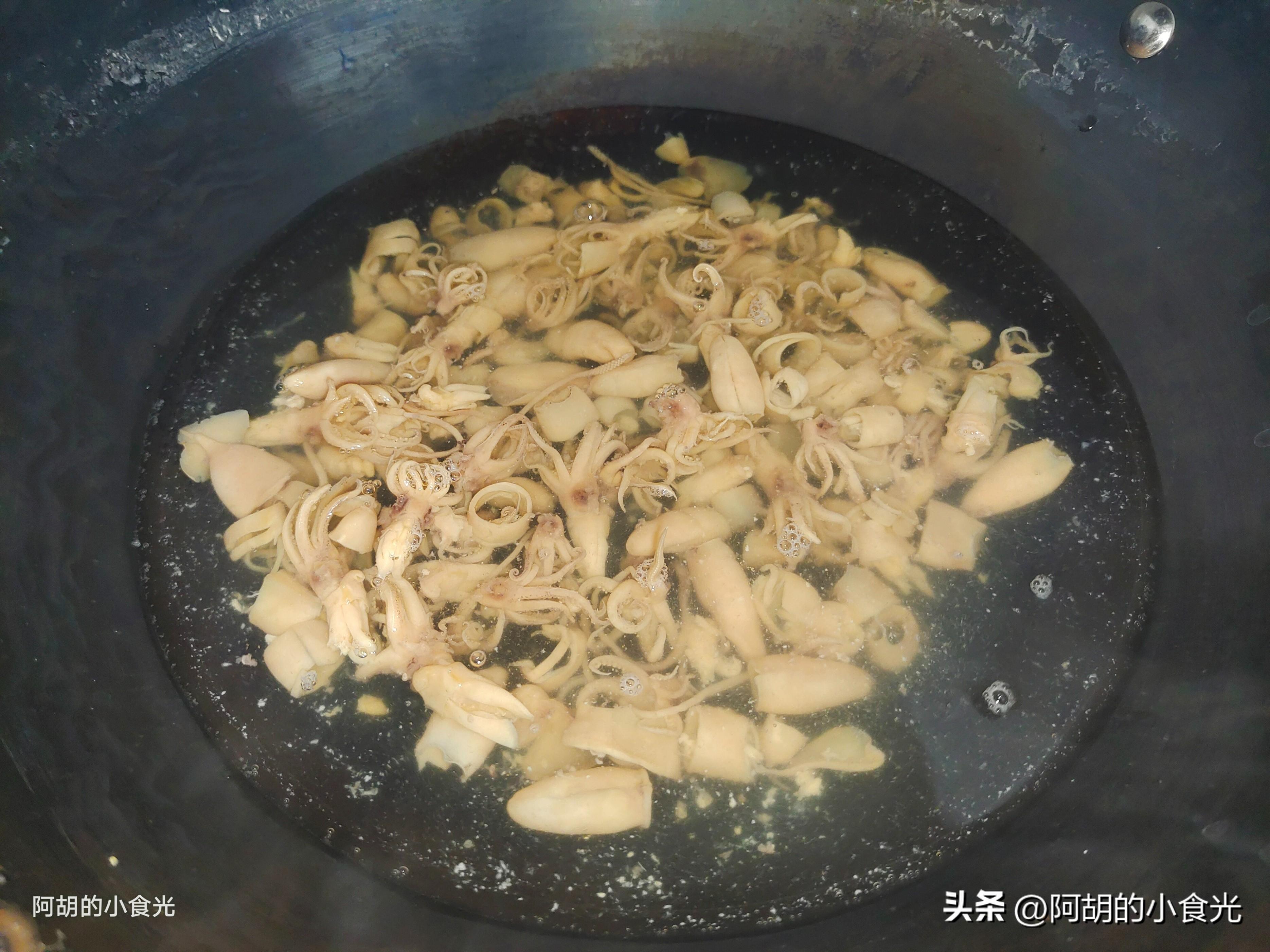 第一步:先來準備今天的主要食材幹籽烏,你可以買到清洗乾淨的籽烏,焯水後可以直接烹飪,比較方便。今天我用的必須自己打理乾淨。先用清水浸泡至完全變軟,而後把籽烏的眼睛、嘴巴都要擠出,而後還有肚子裏的軟骨要拔出,再將其用清水多多清洗幾遍,將個頭稍微大一些的撕開,而後開水下鍋加入一些料酒焯燙幾分鐘,撈出後冷卻擠幹水分待用。