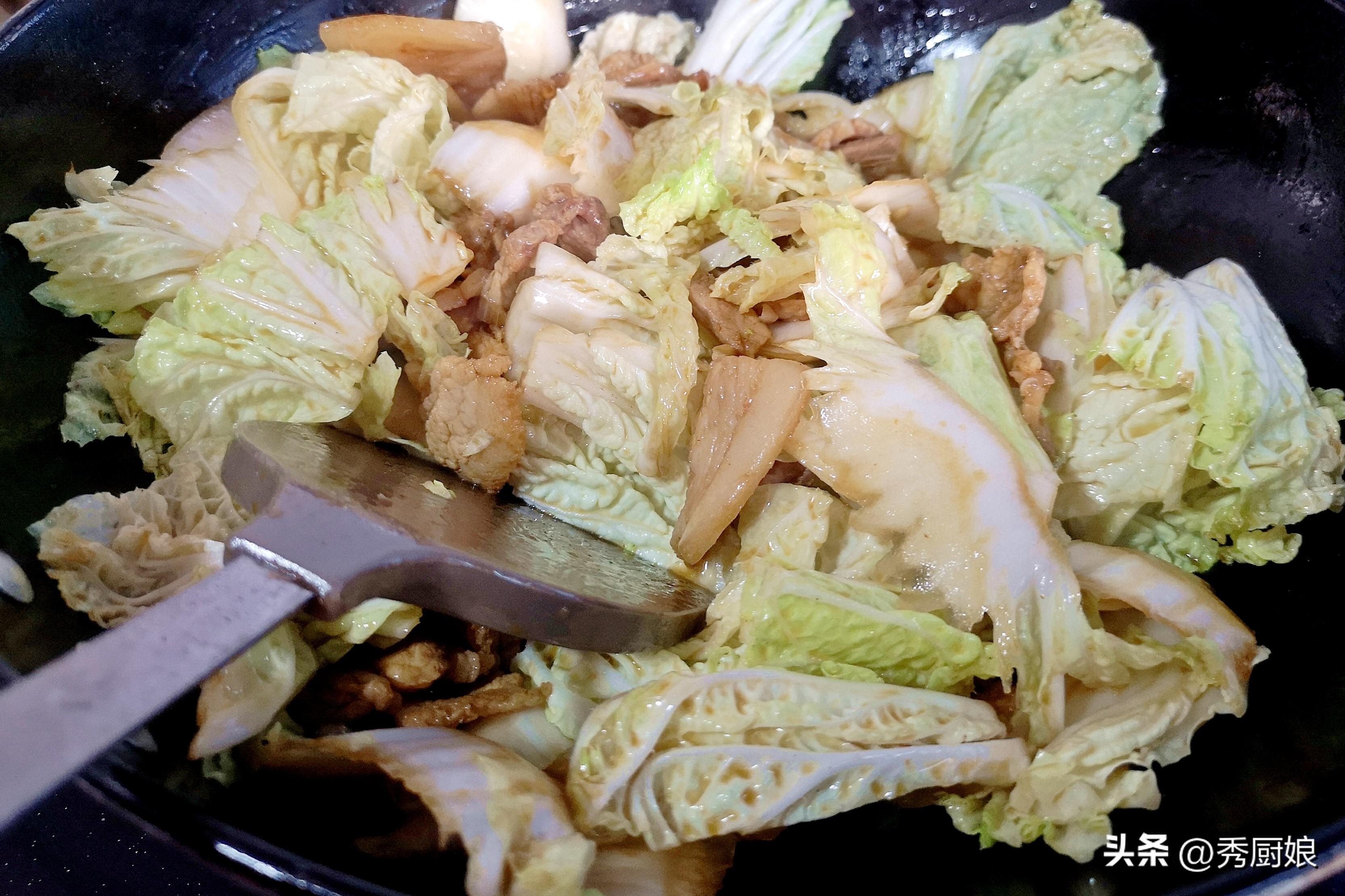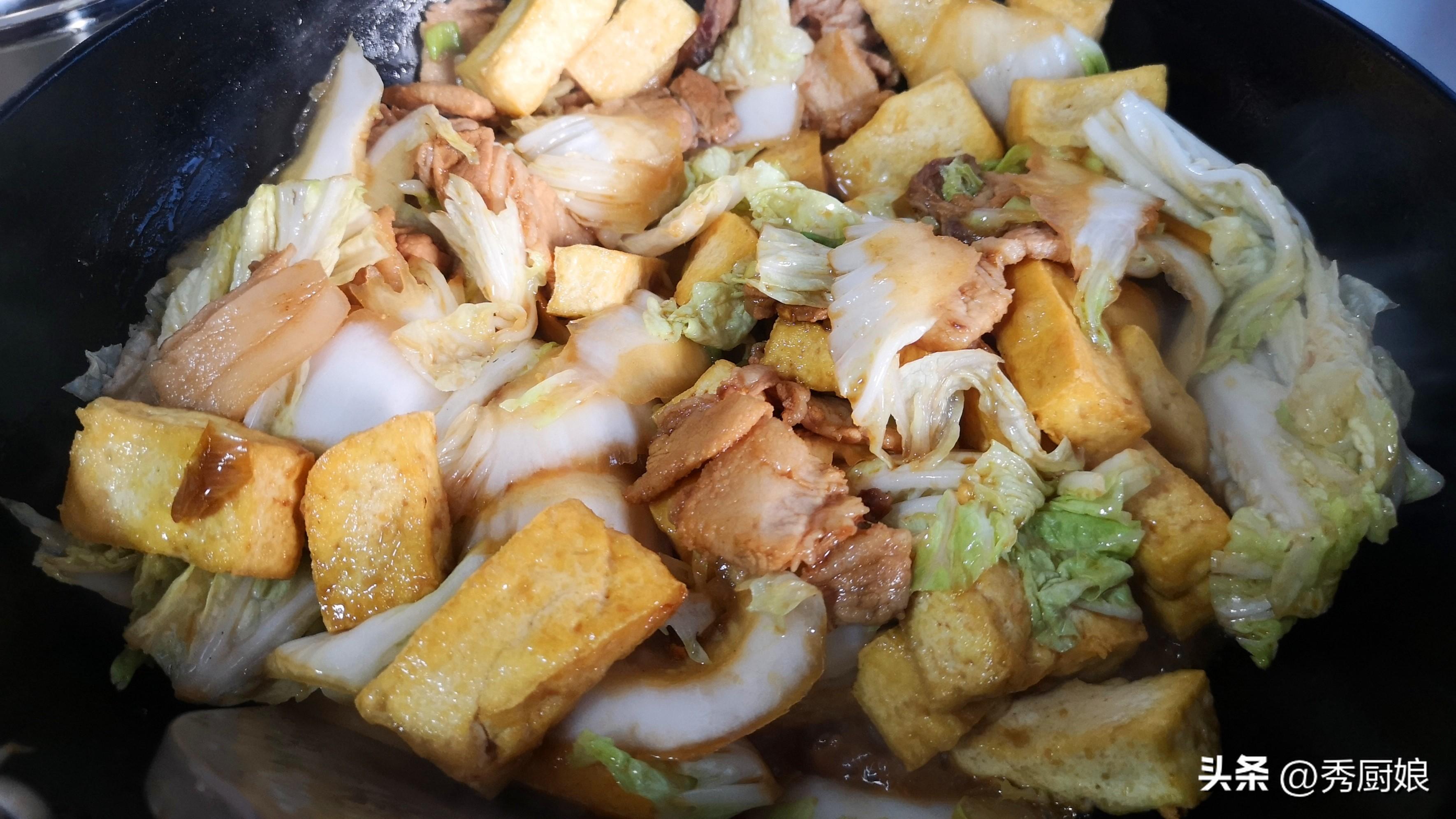 答案是:先炒肉,再炒白菜,最後才下豆腐一起燉!