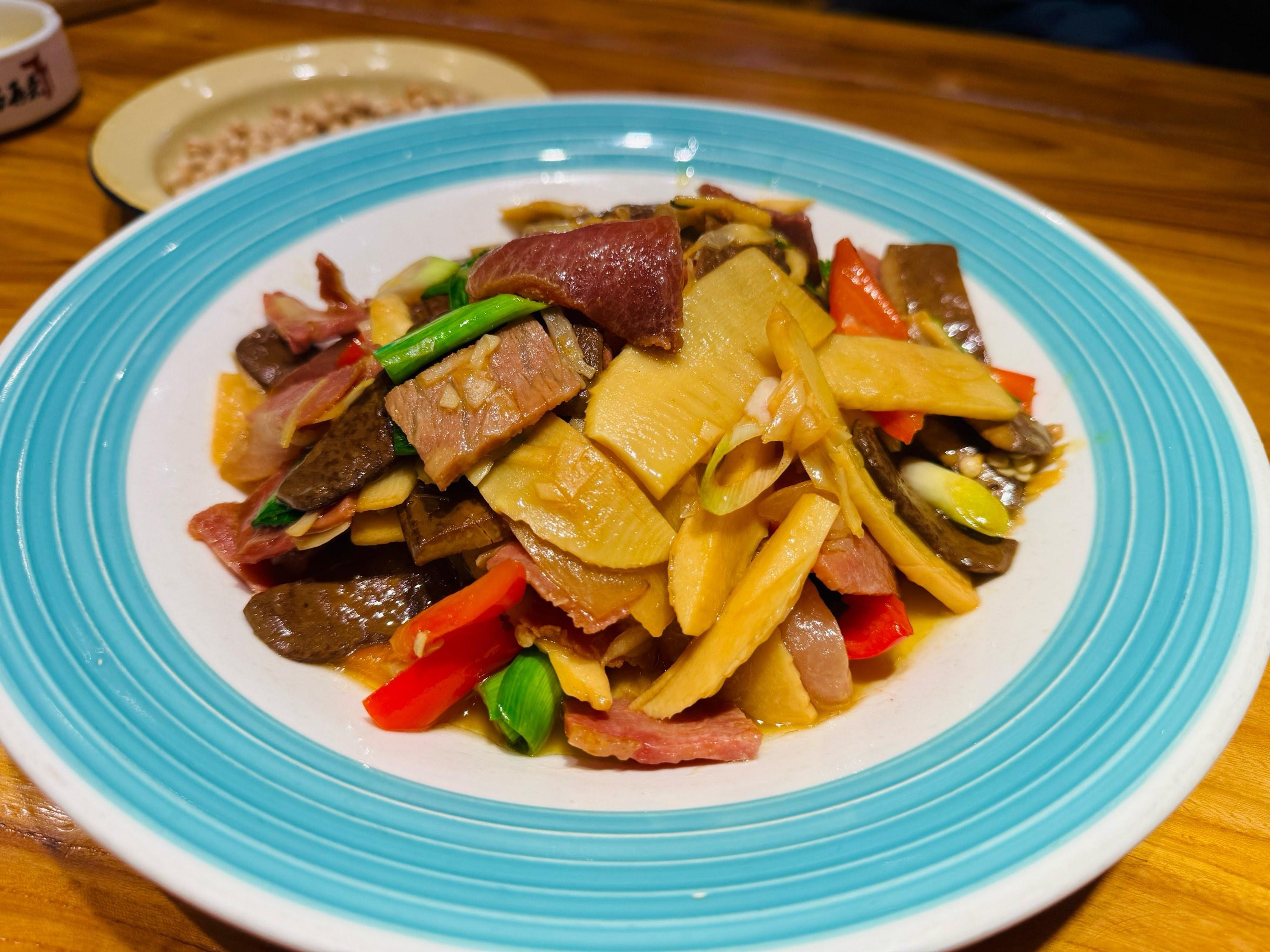 推薦喫法, 冬筍炒臘肉,一種經典美食,冬筍中和臘肉的油膩,臘肉的鮮香與冬筍的脆爽相互融合,好喫美味。
