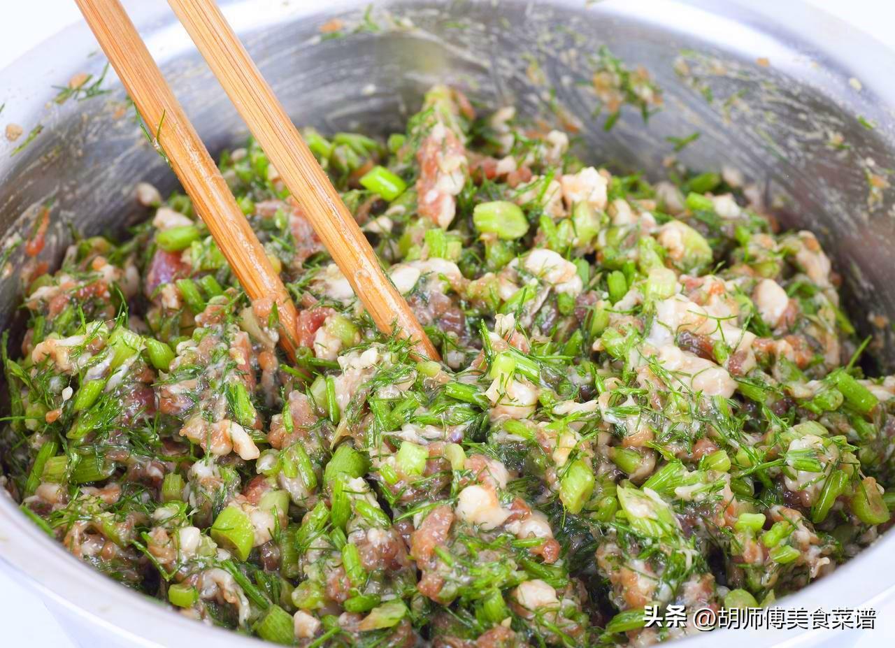 【食材準備】:茴香300克、肉末400克、食鹽、花椒水50ml、胡椒粉、食用油、餃子皮適量。