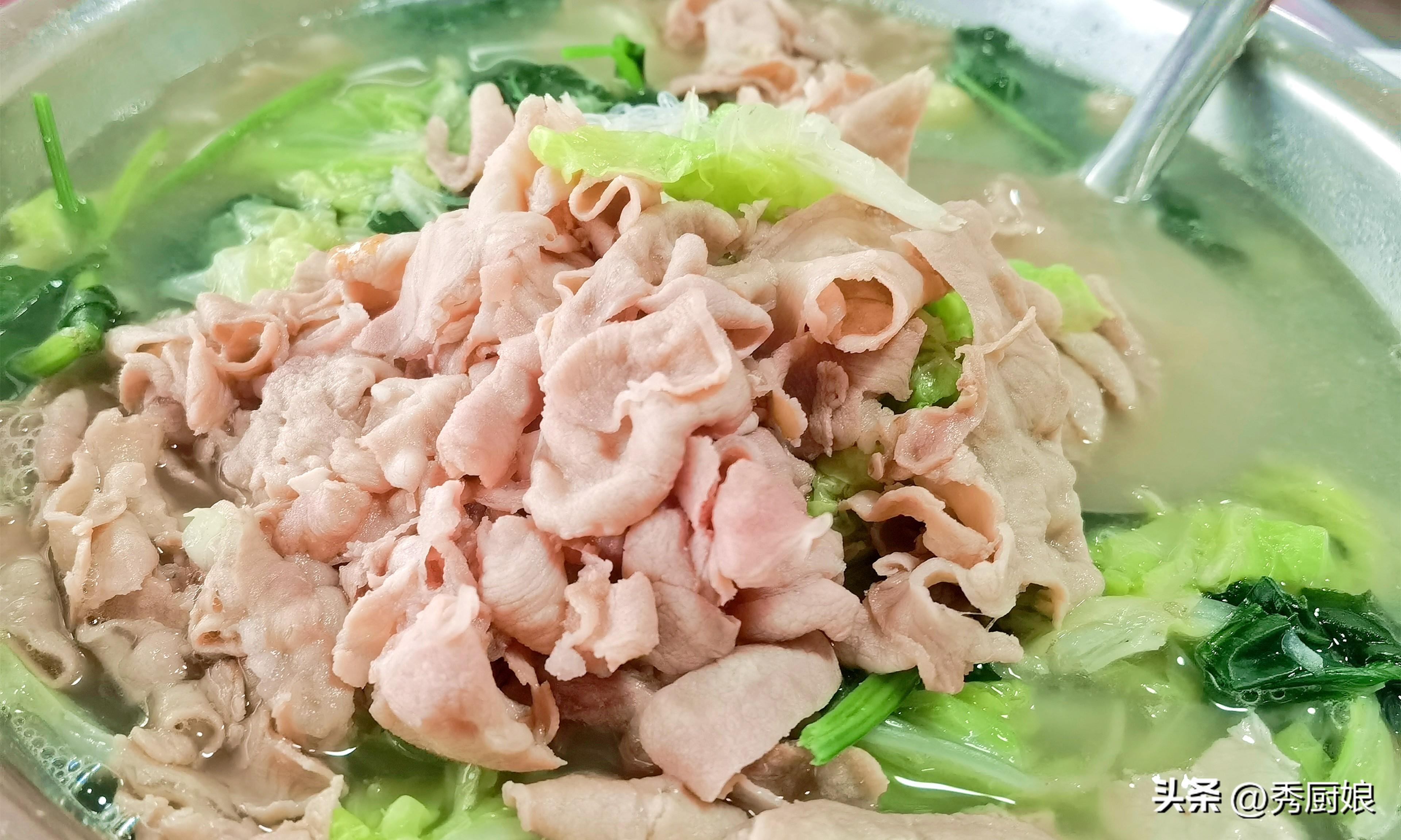 2. 豆芽和油菜洗淨,在開水裏焯一下撈出,鋪在大碗底。這兩樣蔬菜做湯底特別清甜。