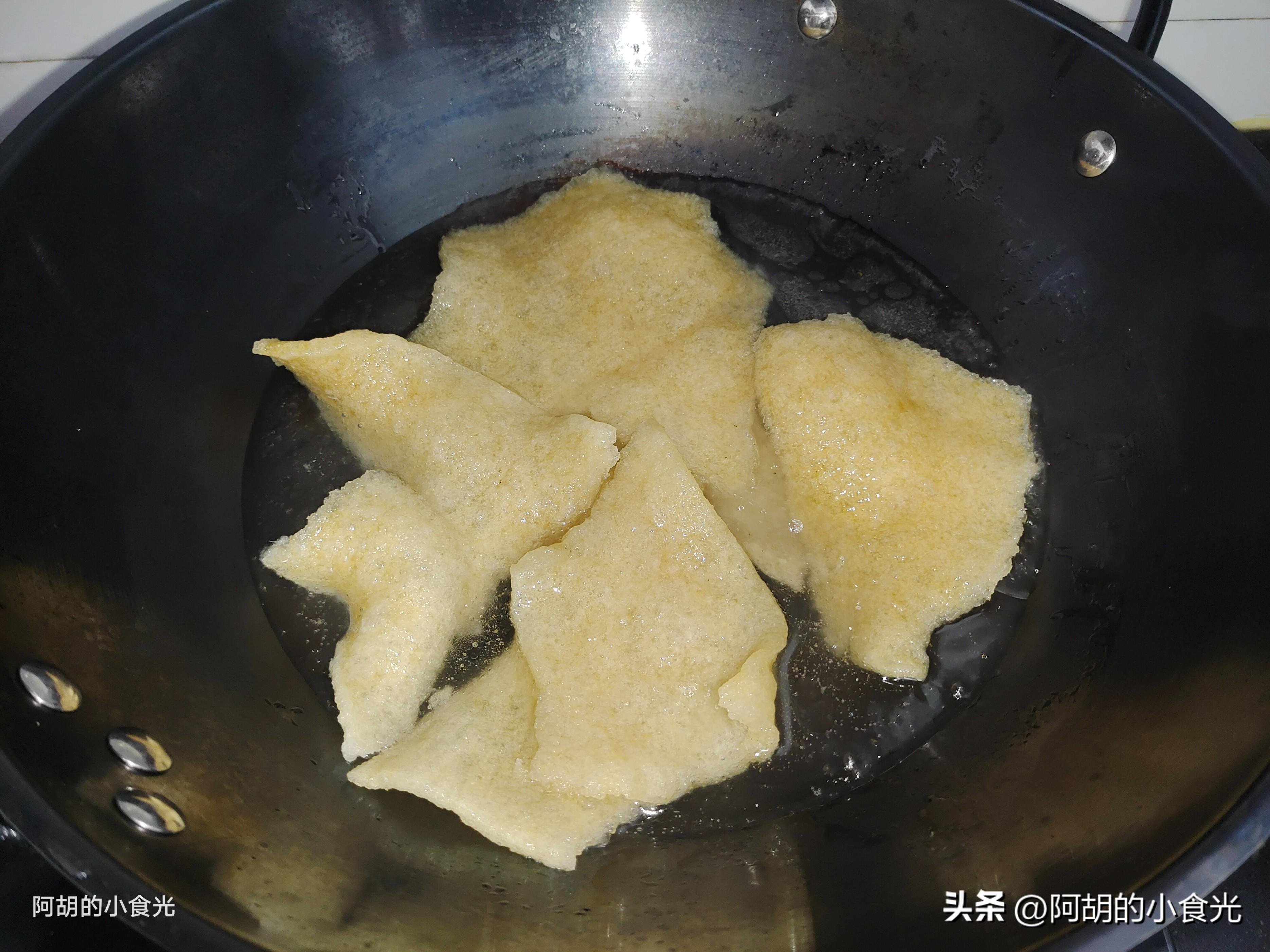皮肚就是豬皮去除油脂後曬乾,而後再油炸後得來的,呈現內部蜂窩蓬鬆狀態,泡軟煮湯時回吸收很多湯汁,軟嫩又有一定的嚼勁,具有提鮮豐富口感的作用,買回來的乾貨自己要用溫水泡發,同時要用重物壓住,讓其完全沒入水中,泡軟後用開水燙一燙衝一衝就可以去除殘留的油脂。