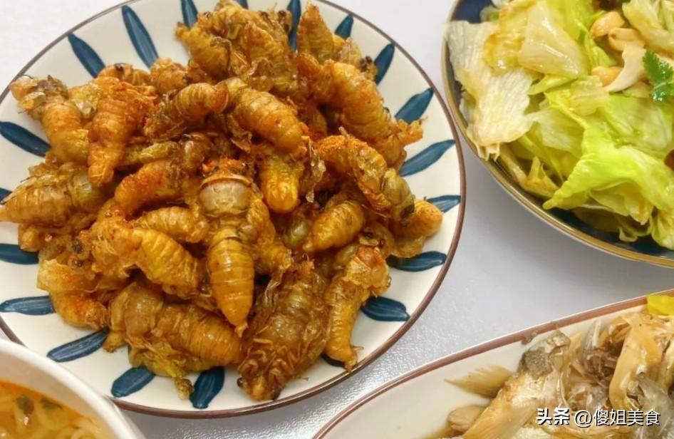 這盤金蟬可是寶貝,夏天的時候,我媽在老家院子裏種的幾棵柳樹上,一到傍晚就有金蟬爬出來。老太太拿着手電筒,一晚上能抓二三十隻。她捨不得喫,都攢在礦泉水瓶裏,加點兒鹽水,凍在冰箱最底層。