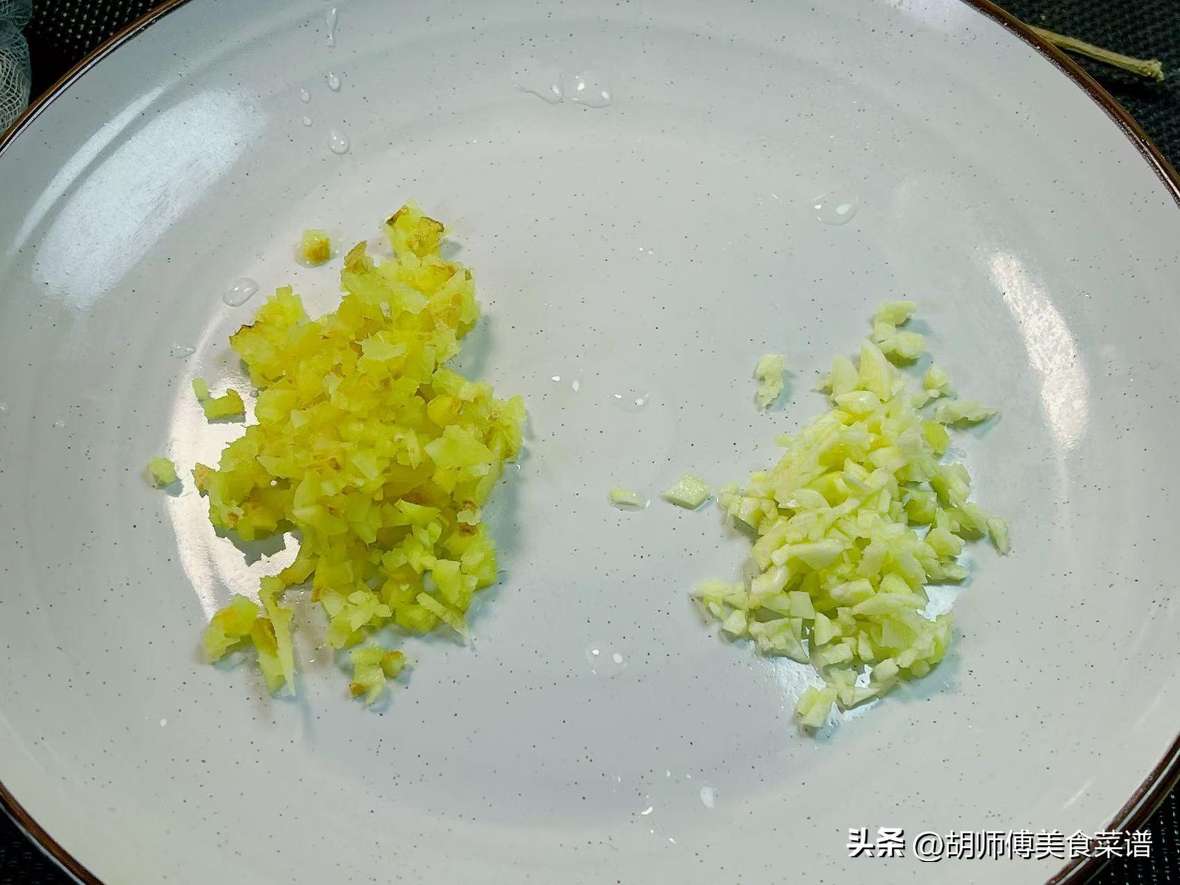 第二步:把嫩姜沖洗乾淨,然後把它切成很細的碎末備用,嫩姜不需要削皮,帶皮喫不易上火。