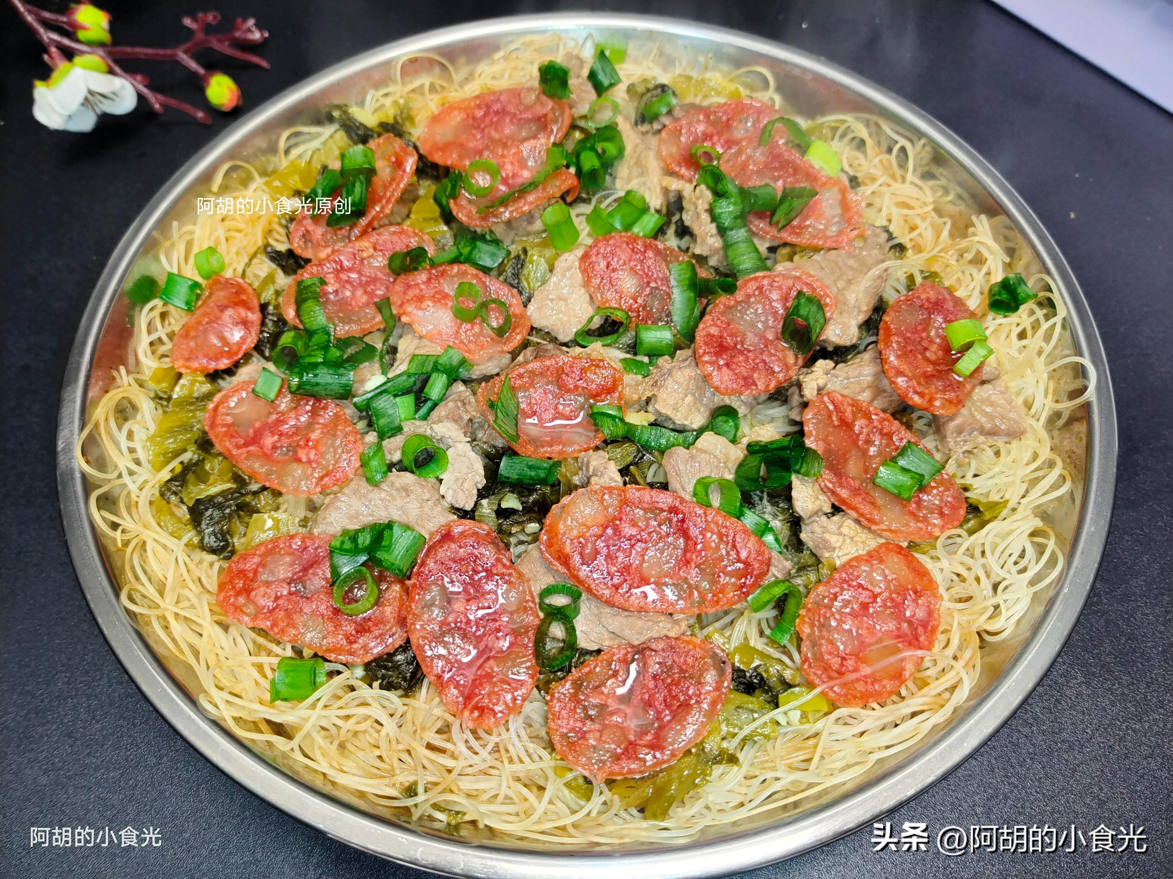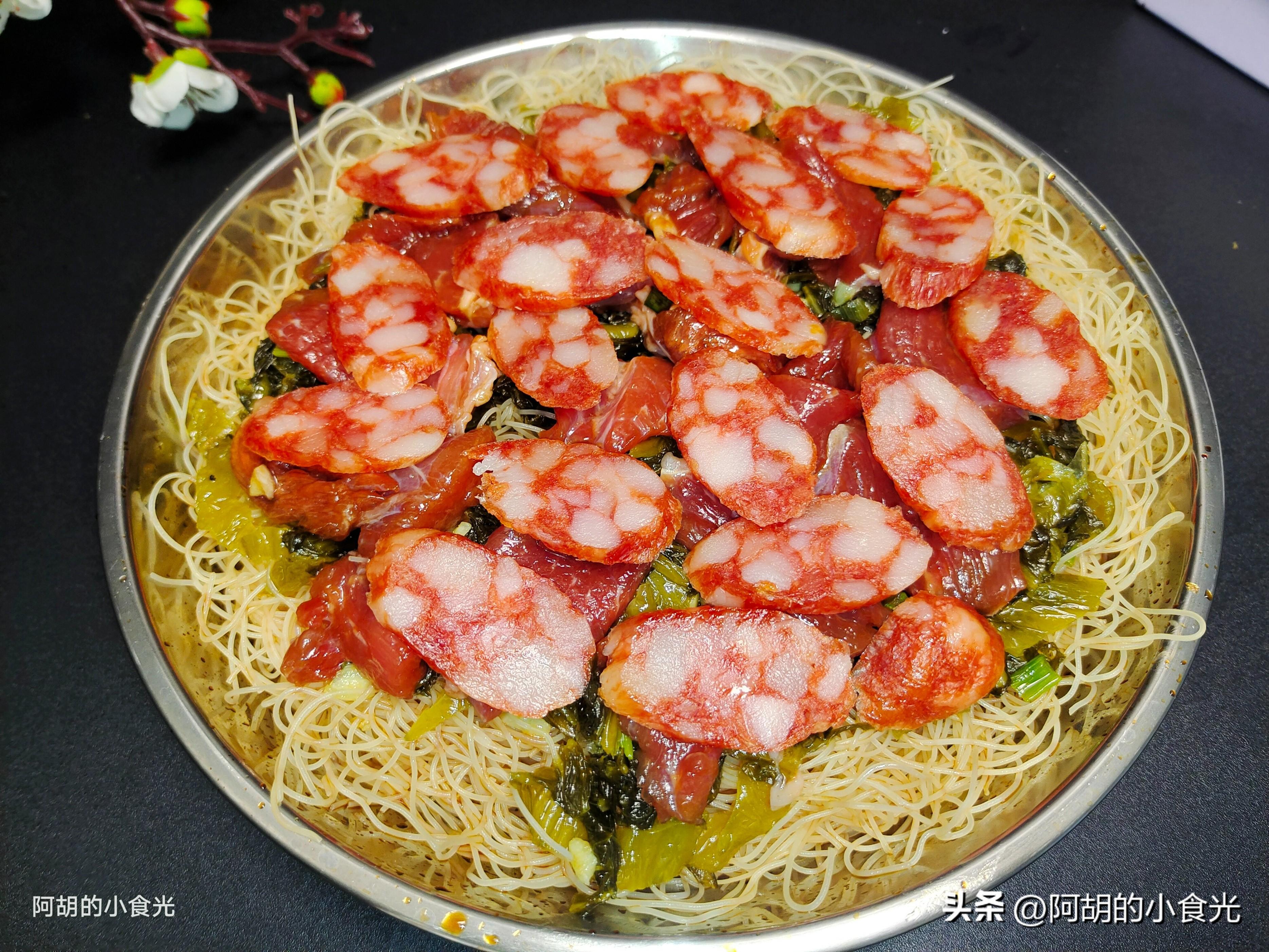 今天這道蒸菜的主食是米粉,菜是酸菜,還有臘腸和牛肉搭配,就是這簡單的4樣食材。酸菜的酸香脆的口味能讓人食慾大增,米粉爽口有嚼勁,浸染了牛肉和臘腸的鮮香更是有食慾,做法簡單又好喫,值得試一試。