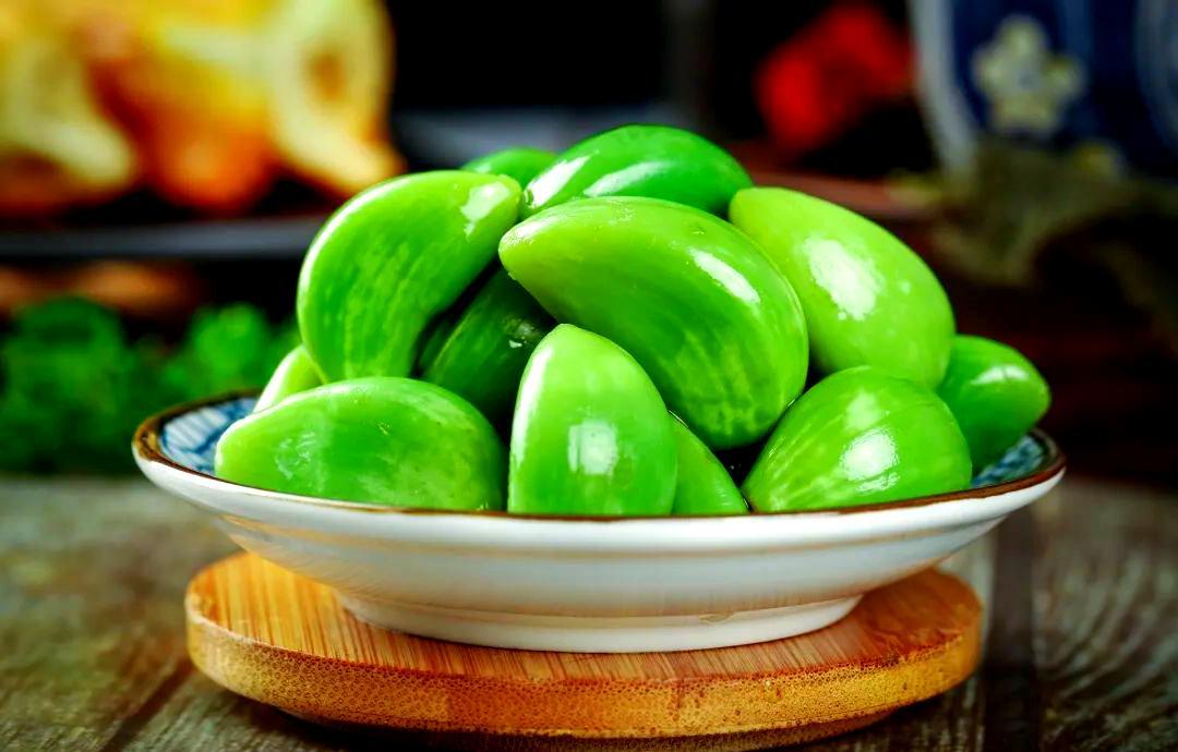 一般醃製3-5天就可以喫了,通常,人們在除夕夜和家人一起喫餃子時,會同時享用臘八蒜。綠色的臘八蒜脆脆的,帶有醋的香味。