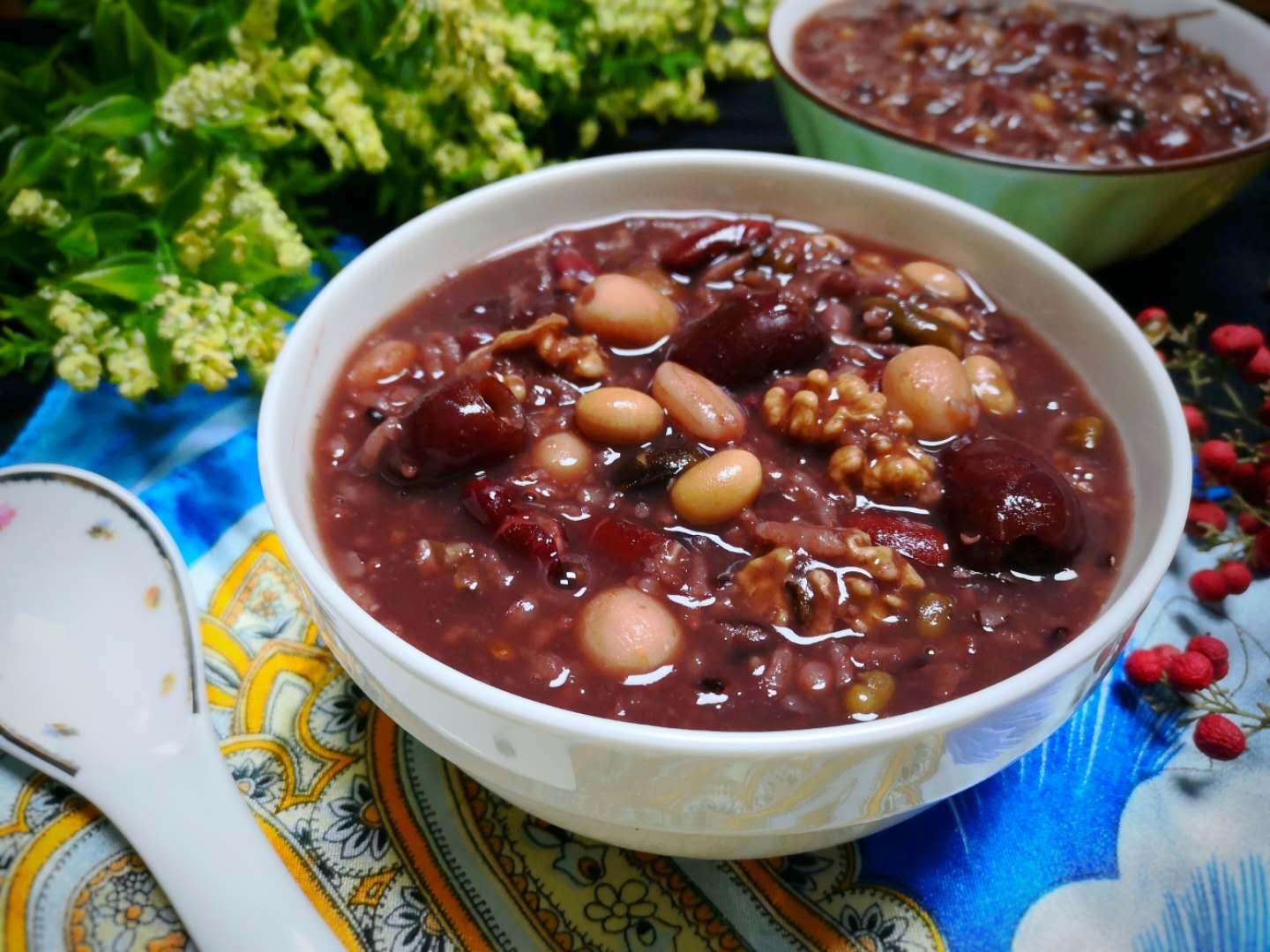 食材:糯米、紅豆、紅棗、桂圓乾、蓮子、花生、薏仁、黑米、葡萄乾、桂圓、百合