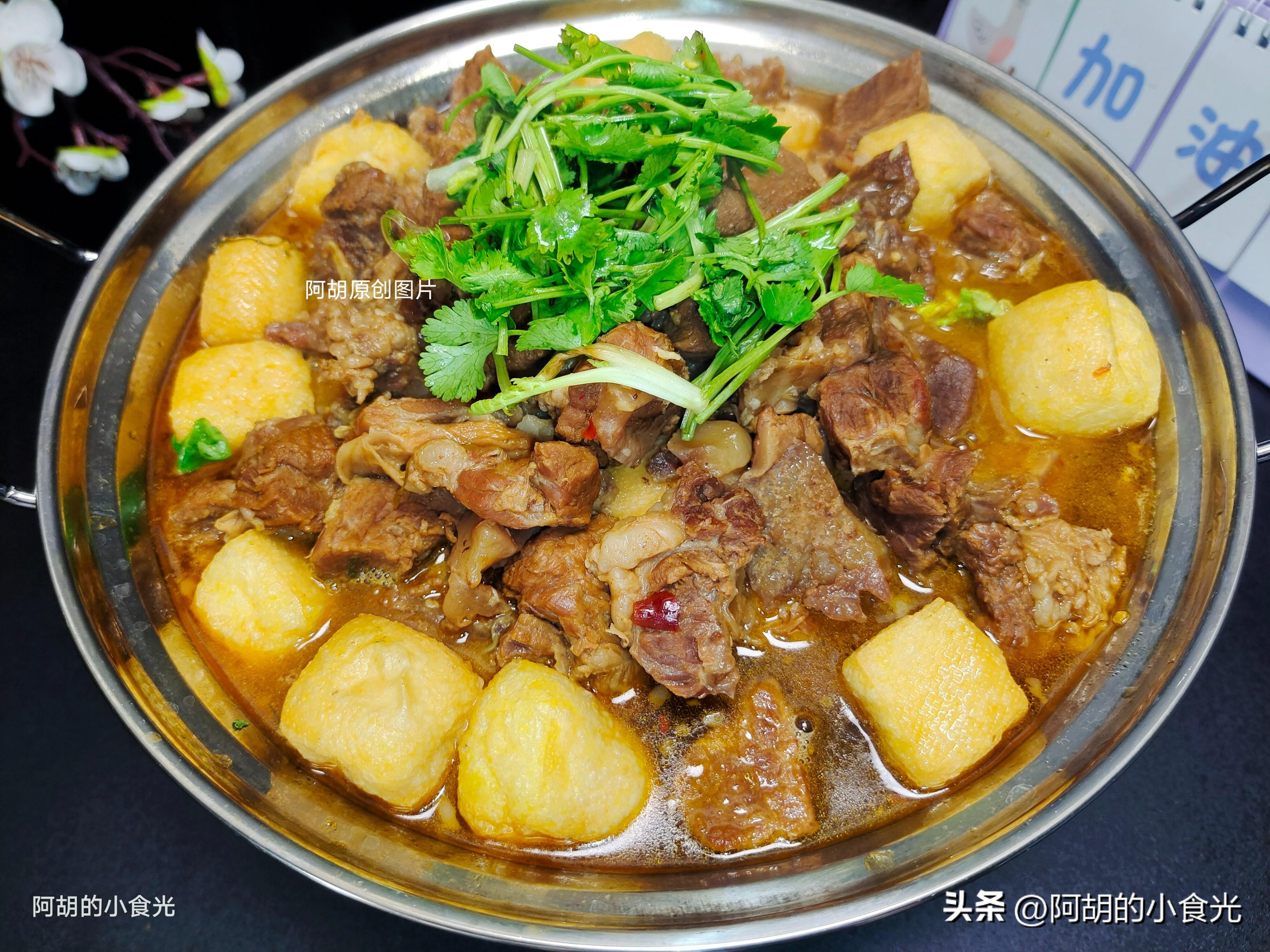 這道菜的肉就是牛肉,不過不是純牛肉,主要就是一些“筋頭巴腦”,我就是感覺這些筋頭巴腦要比純肉的好喫一些,尤其是那些牛板筋,肉香味濃郁又帶有一些勁道。再搭配一些冬季的菊花菜,油豆腐和豆腐皮,既豐富了口感又能解除一些油膩感。