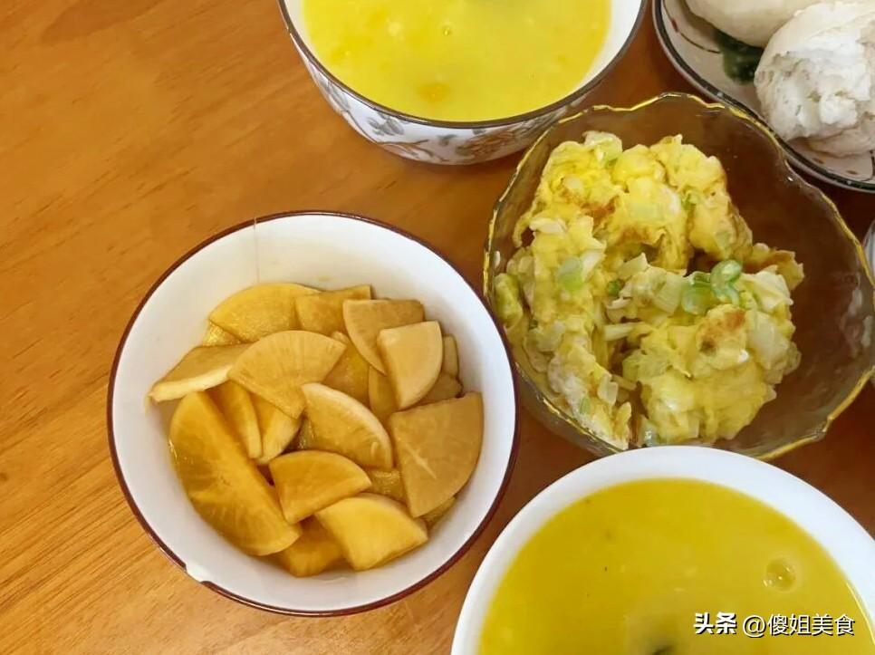 如果說南瓜粥是溫柔的,那婆婆醃的白蘿蔔片就是早餐桌上的“小炸彈”,爽脆開胃,一口就能喚醒所有味蕾。