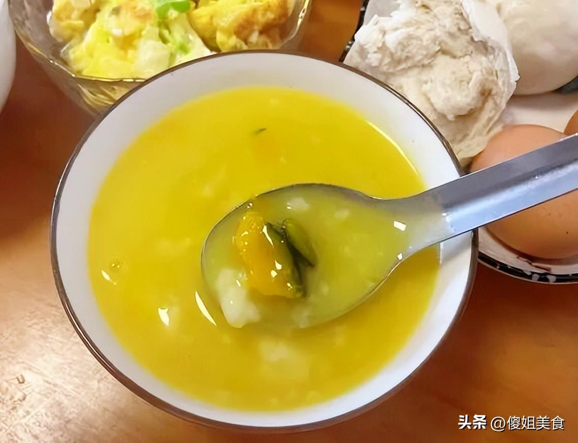 今天早上,我又是在南瓜粥的甜香中醒來的,照例拍了張早餐照片發朋友圈:“又是被早飯香醒的一天~”配圖是婆婆今天做的:南瓜大米粥、醃白蘿蔔片、饅頭、水煮蛋,還有一碗大蔥炒雞蛋。
