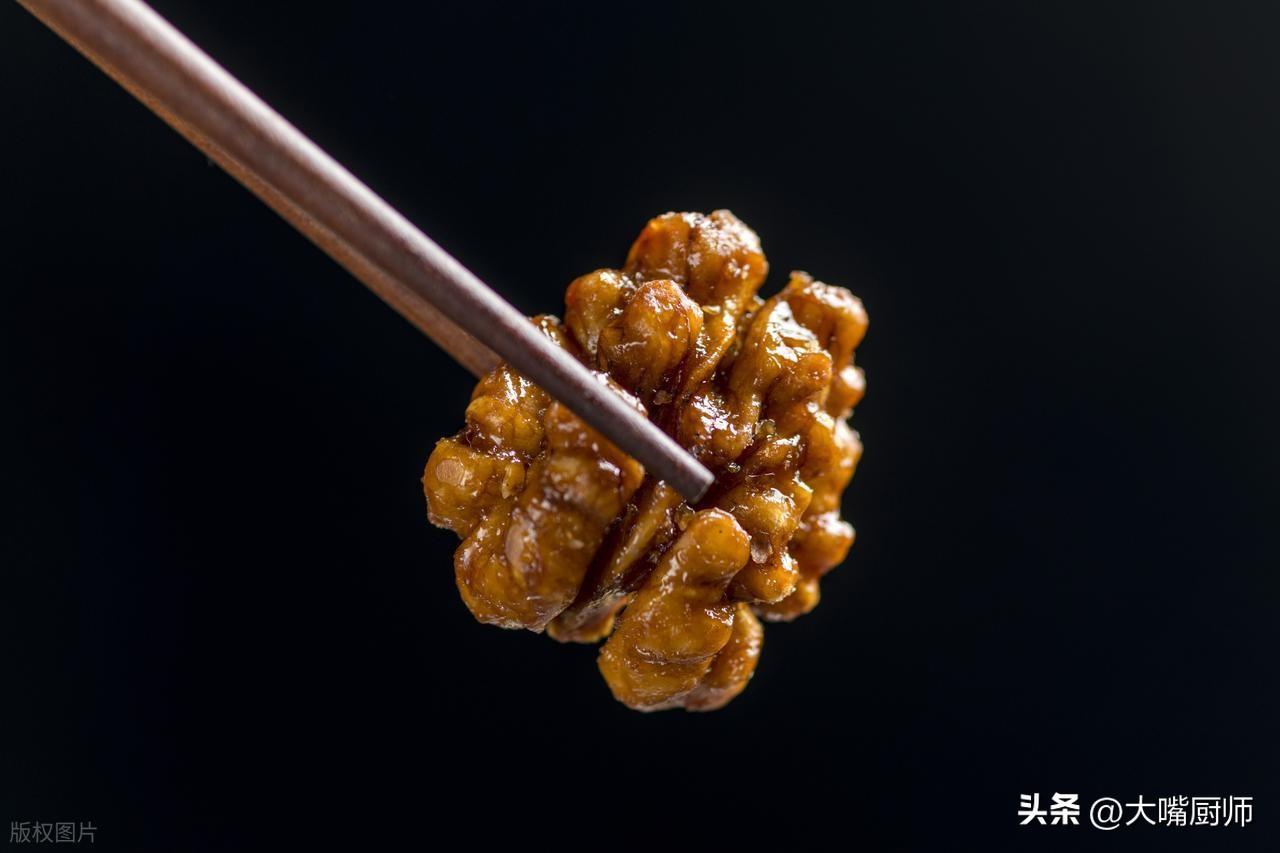 撈出炸好的核桃仁,撒上白芝麻,晾涼後即可食用。琥珀核桃香甜酥脆,營養豐富,是春節期間老少皆宜的美味。