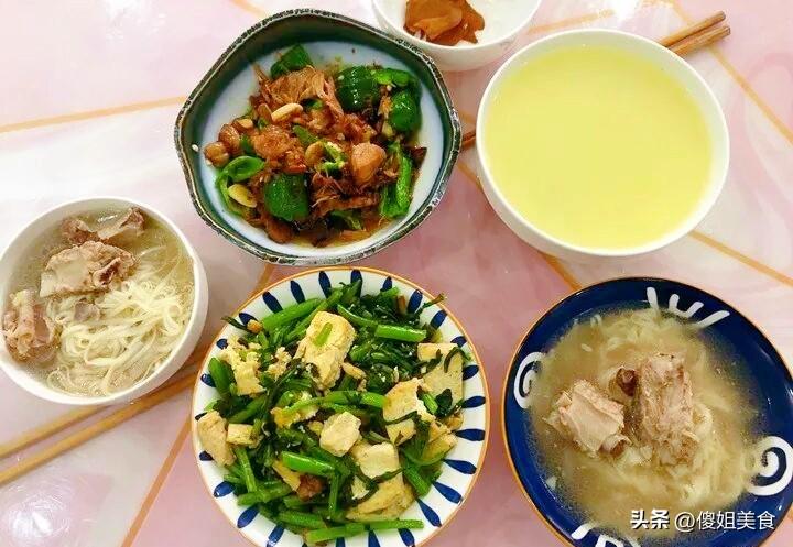 我看得鼻子一酸,是啊,婆婆五點多就去菜市場買最新鮮的排骨和茼蒿,回來燉湯、備菜……這一切,都是爲了讓我十二點進門時,能喫上最合時宜的那口熱乎。那就一起來看看,這天讓我朋友圈火了的“幸福午餐”到底有多香吧。