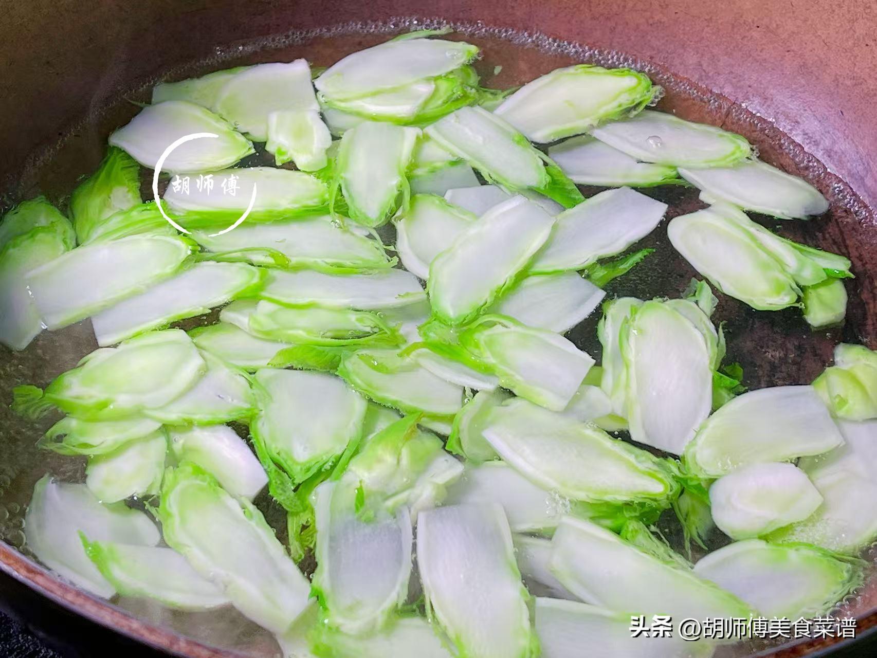 第二步:鍋中放入適量水,等水燒熱後,將3滴油和兒菜片放入鍋中,大火將兒菜焯水30秒後撈出,然後立即過涼水,等兒菜完全冷卻後即可撈出備用。