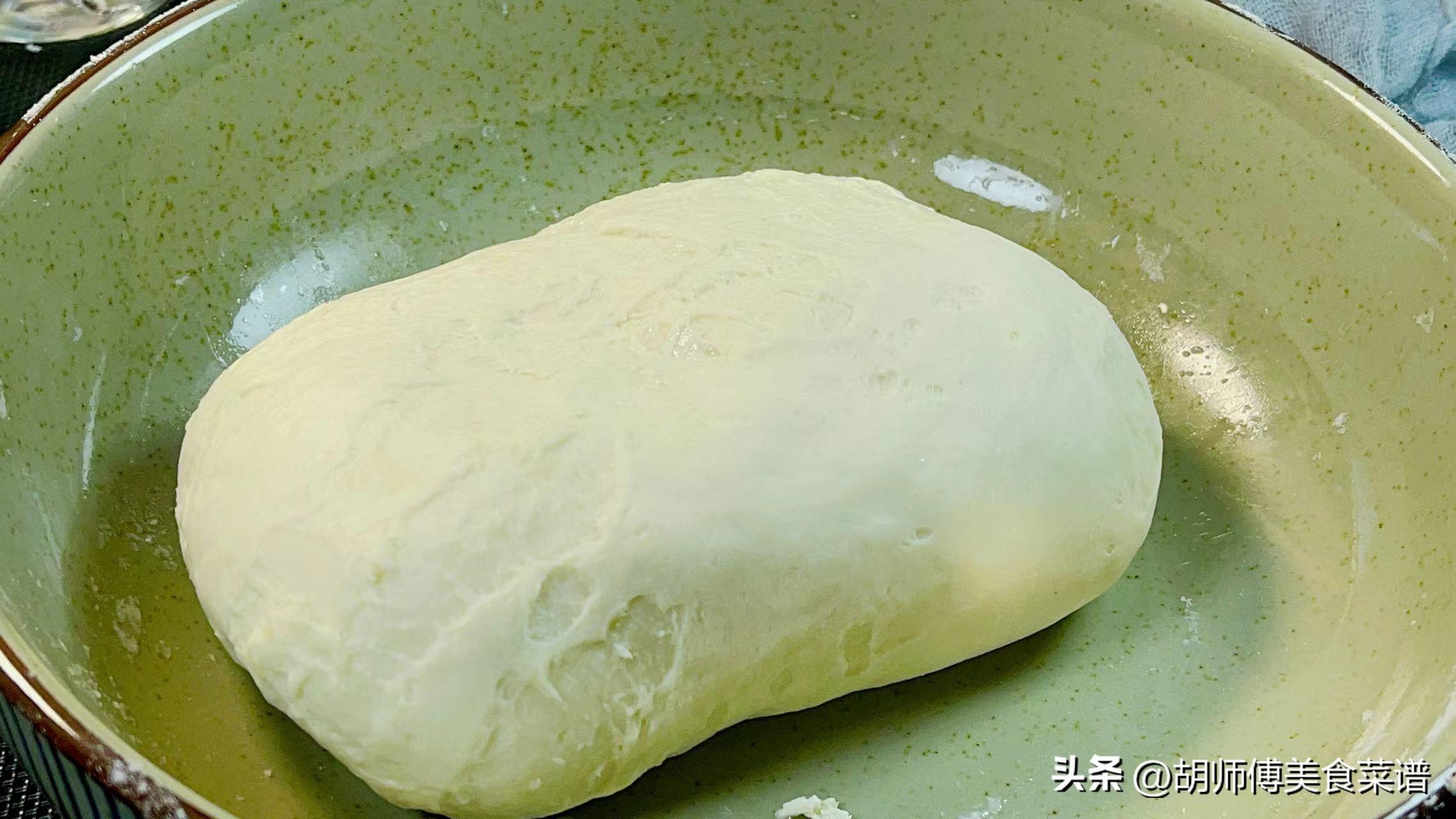 第四步:把300克麪粉分成2份,一份用熱水燙熟,一份用冷水攪拌均勻,然後將它們混合在一起揉成麪糰後醒面20分鐘。