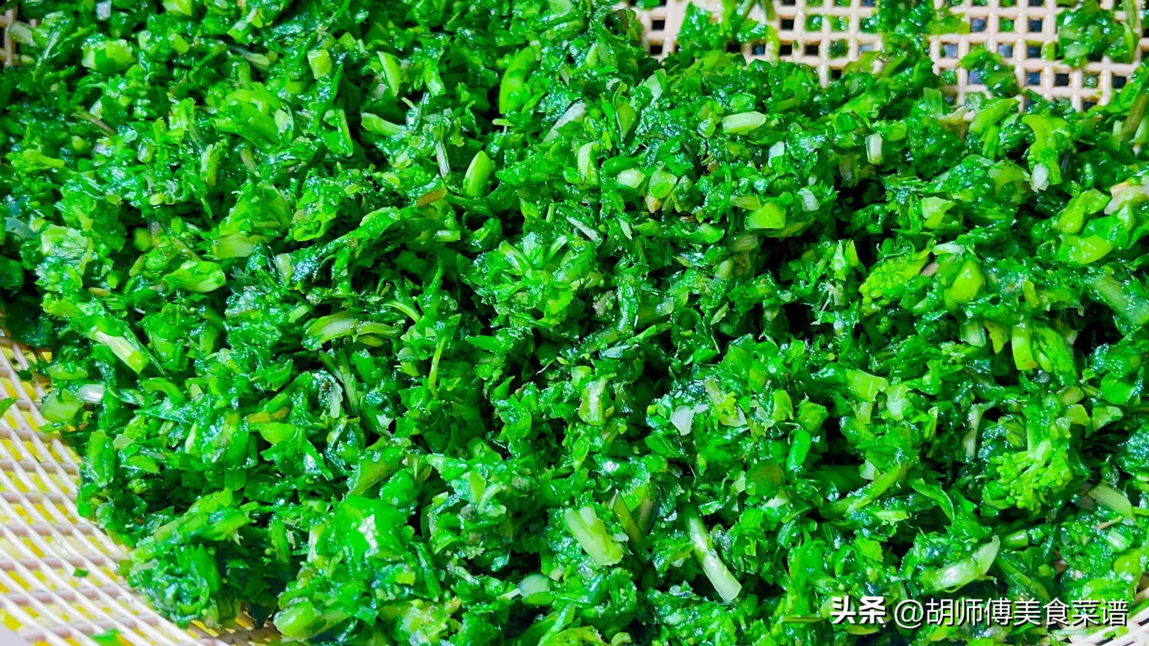 第一步:將薺菜沖洗乾淨,然後把薺菜切成碎末後放入一勺油到薺菜中拌勻,接着將薺菜醃製10分鐘後,最後將薺菜中的水擠出來備用。