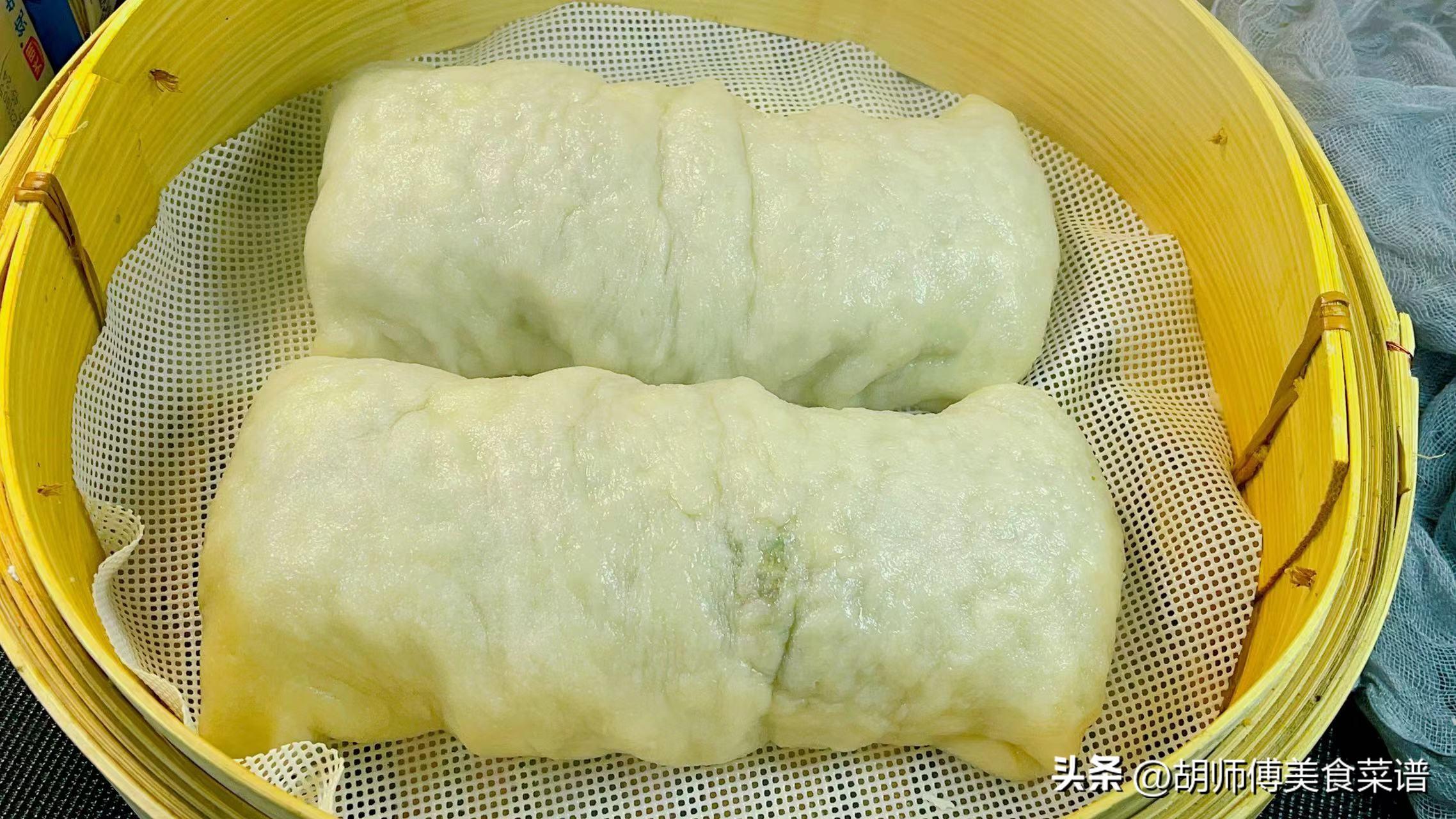 第五步:把醒好的面揉成麪皮後,然後把拌好的薺菜餡包入皮中卷好,接着再把薺菜面卷放入蒸鍋中,大火蒸12分鐘即可食用。