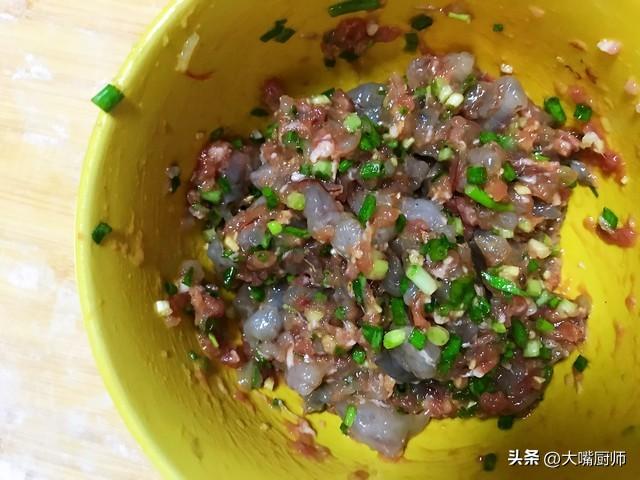 燈籠紅蝦餃子的製作暗藏玄機:蝦仁去蝦線後加鹽、料酒、胡椒粉醃製,豬肉剁餡加蔥薑末、一品鮮醬油、蠔油、雞汁攪拌,分次打入花椒水至肉餡膨脹;韭黃切末與肉餡混合,加鹽後淋豬大油與香油混合的料油;餃子皮包入肉餡,封口時嵌入整隻蝦仁。包制時需注意鹽最後加入,防止韭黃出水。煮熟的餃子咬開瞬間,整隻蝦仁彈跳而出,韭黃豬肉的醇厚與蝦仁的鮮甜在口腔交響,成爲年夜飯上最受歡迎的主食。