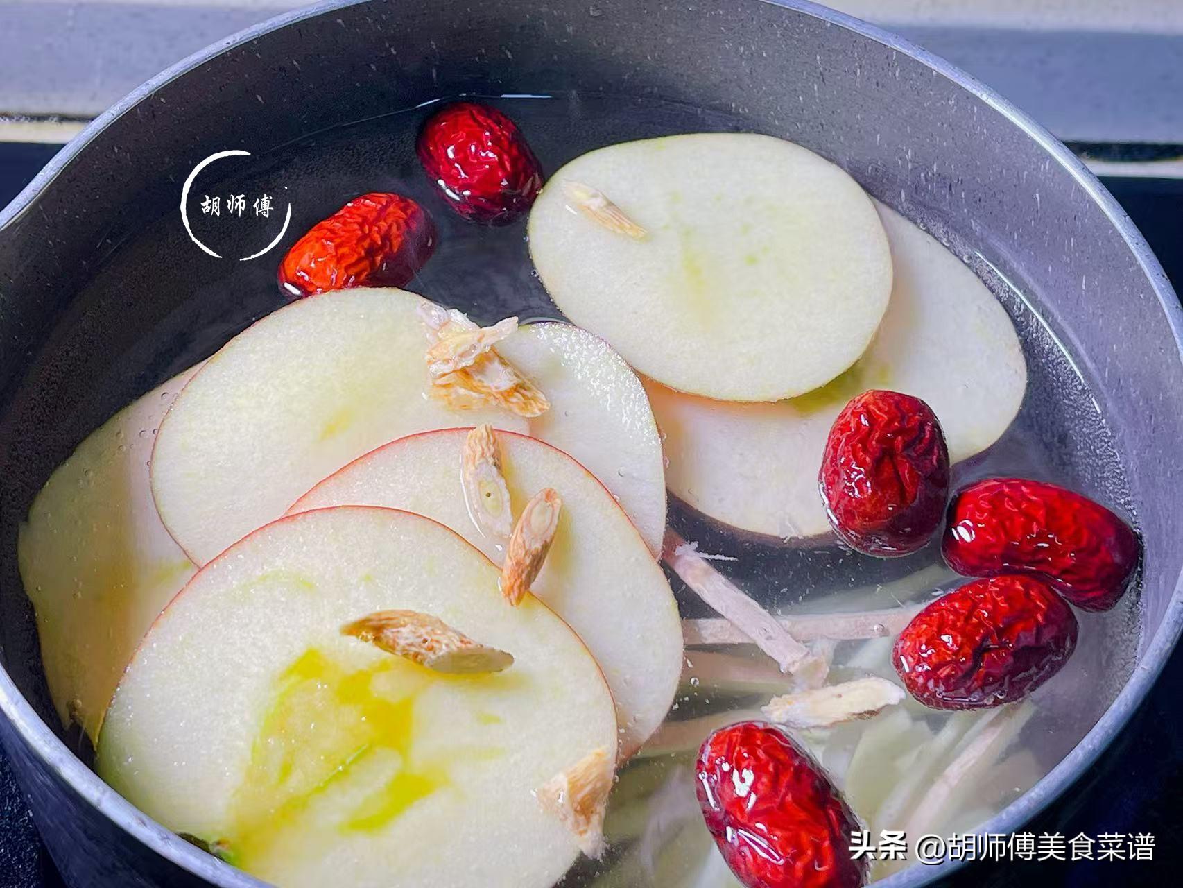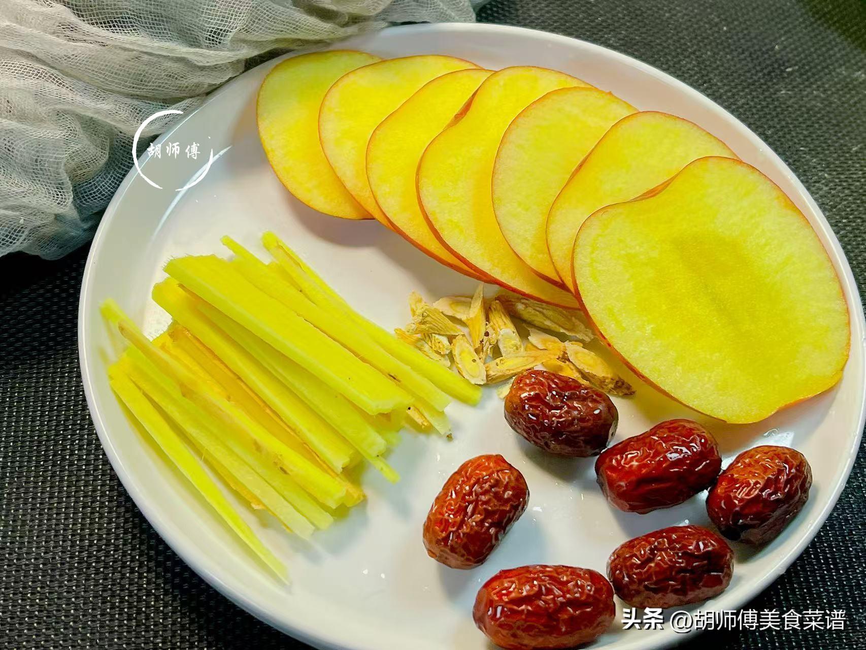 【食材準備】:蘋果1個、生薑10克、紅棗10克、黃芪2克。