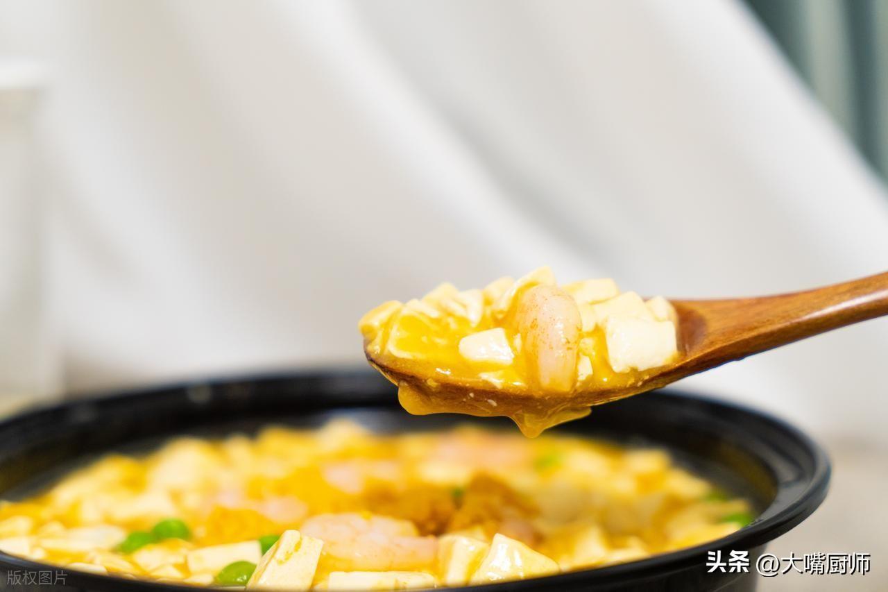 寓意:金黃豆腐與翠綠蔬菜搭配,象徵財富與健康;蝦仁寓意“笑口常開”,適合全家共享。