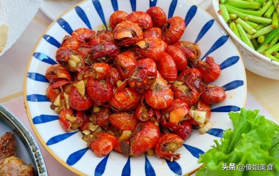 蒜薹是時令菜,現在正當季,又嫩又好喫。做法最簡單了:蒜薹洗淨切段,鍋裏油熱後放入蒜薹翻炒,加點鹽和少許生抽調味,炒到蒜薹變軟但還保持翠綠就可以出鍋了。清脆爽口,正好可以解排骨和龍蝦的膩。