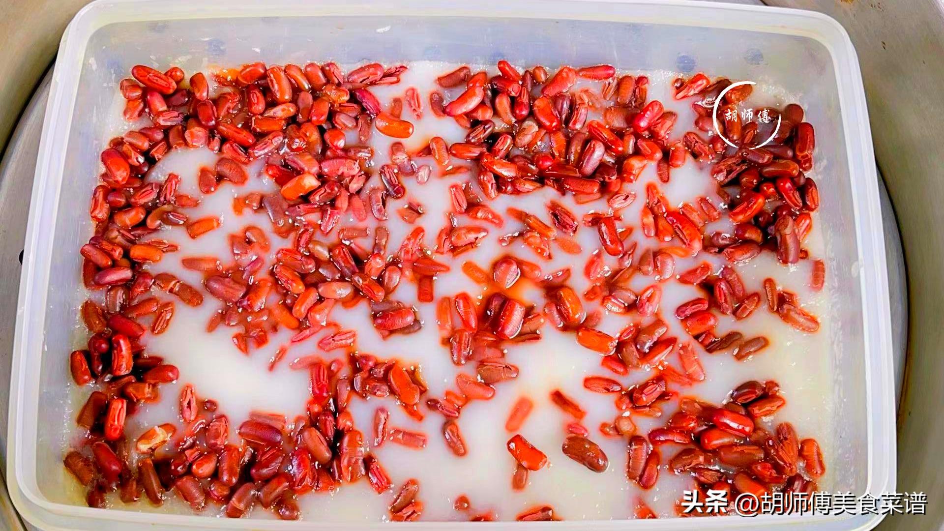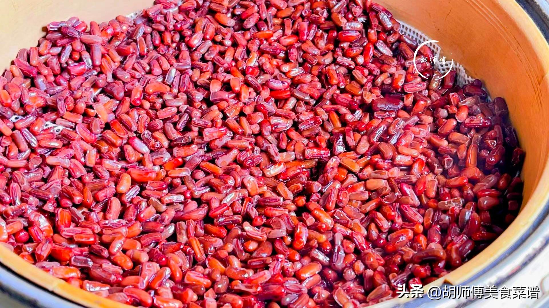 第一步:把紅豆直接放入高壓鍋中,同時加入適量水,將紅豆壓15分鐘即可,沒有經過浸泡的紅豆,壓好後會更紅潤。