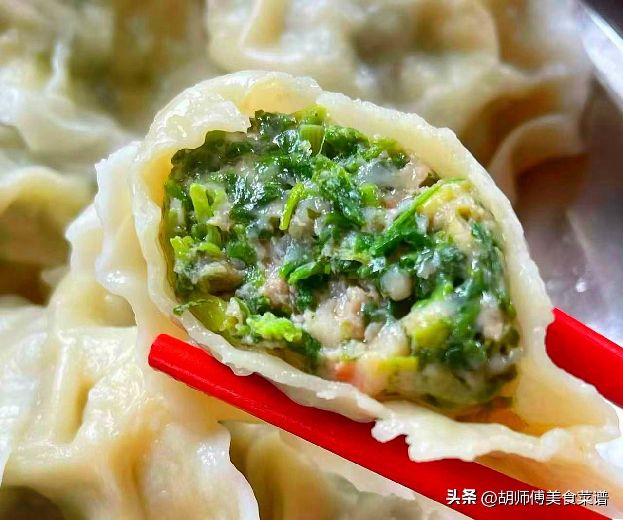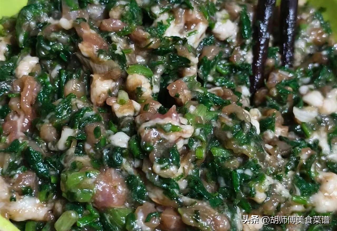 【食材準備】:薺菜400克、肉末300克、胡椒粉、薑末、花椒水30ml、食鹽、雞精、餃子皮適量。