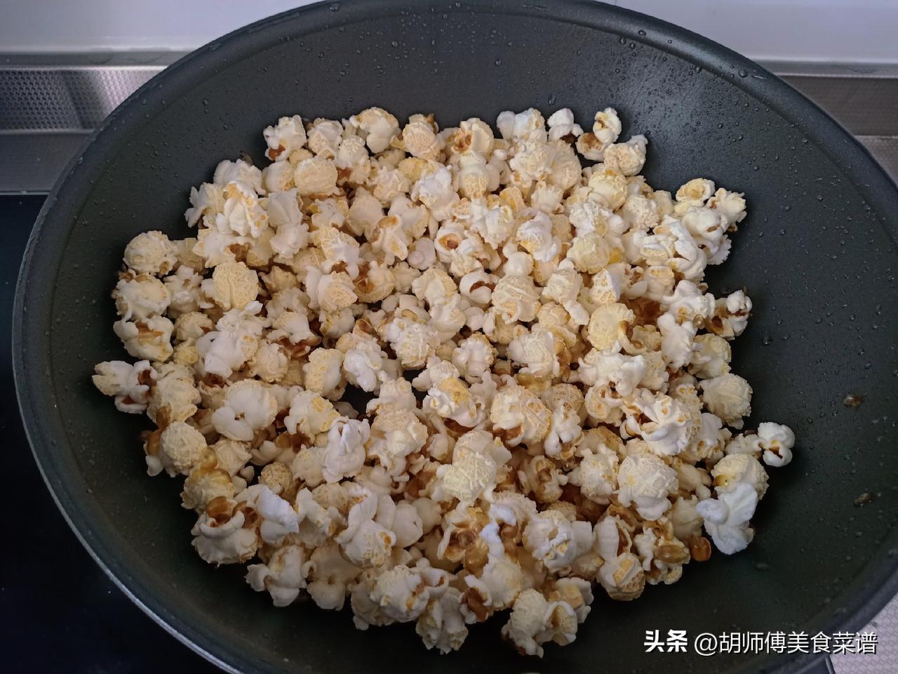【炸爆米花的做法】:將食用油、白砂糖、玉米全部都放入鍋中,然後開火不斷翻炒玉米,直到玉米出現爆炸聲,立即將鍋蓋住,接着不斷搖晃鍋,直到聽不到爆炸聲,說明爆米花全部都做好了。