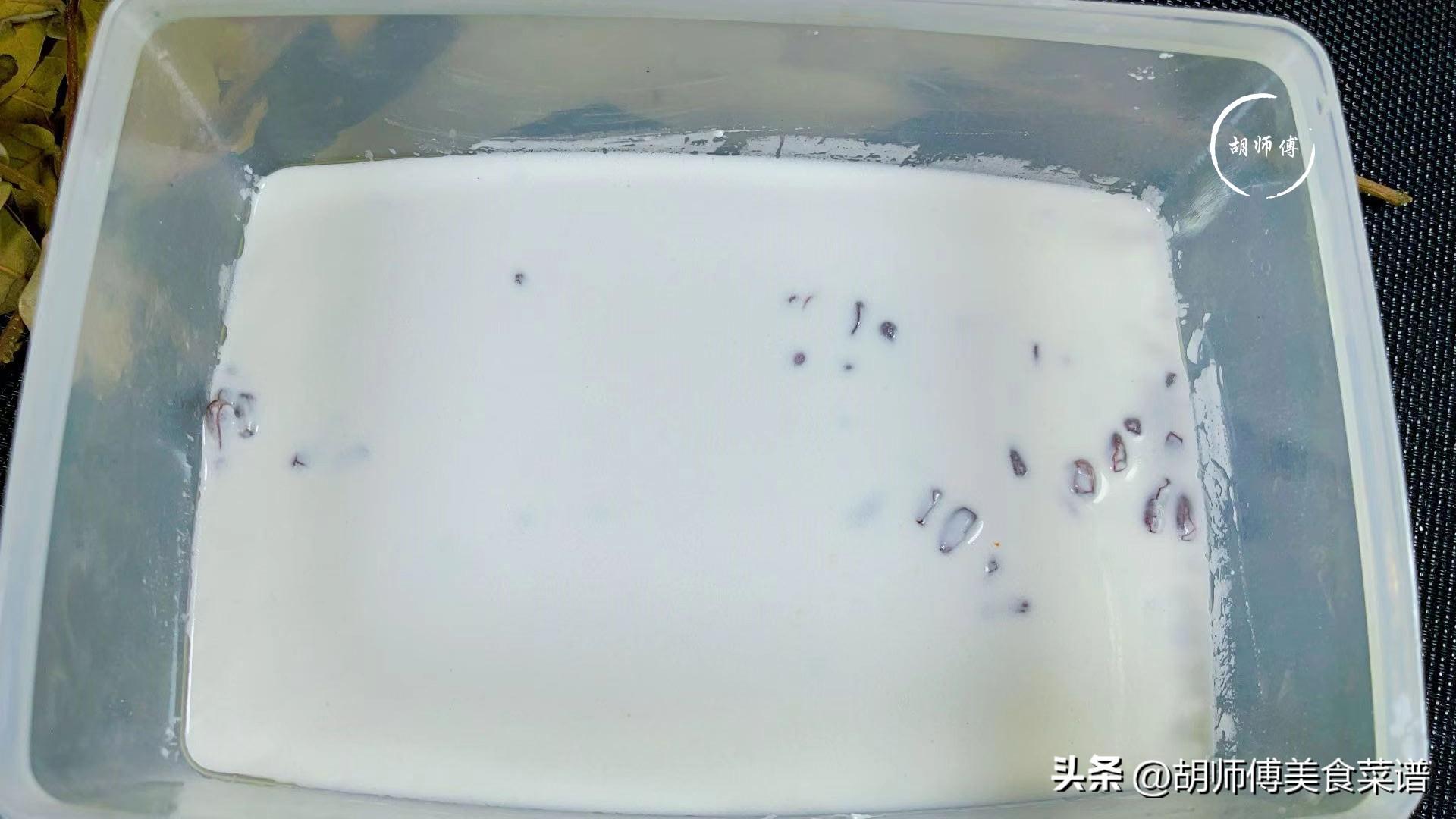 第二步:將糯米粉、白砂糖、400ml水全部都放入盆中,將它們攪拌均勻,然後準備一個乾淨碗,在碗底刷上一層油後,再將紅豆和糯米漿放入碗中。