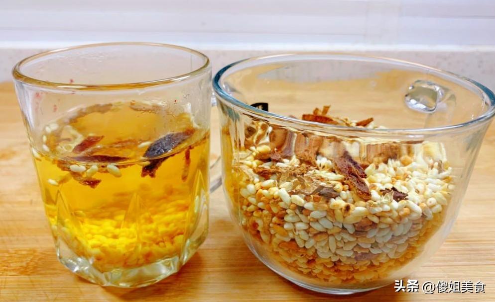 想喝的時候,用乾淨的勺子取一兩勺,放進杯子裏,衝入沸水,蓋上蓋子燜5分鐘左右,讓味道充分釋放。這時候您會看到,茶水是漂亮的金黃色,聞一聞,香氣撲鼻。喝上一口,先是陳皮的甘香,接着是炒米的醇厚,最後是生薑淡淡的辛辣,從喉嚨一路暖到胃裏。