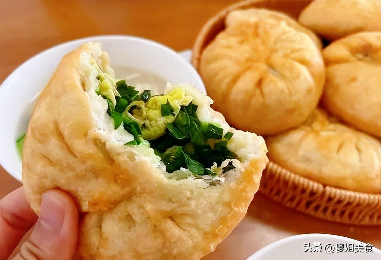 除了湯麪,桌上最搶眼的要數那盤金燦燦的餡餅了,一個個圓鼓鼓的,煎得兩面金黃,還能隱隱看到裏面韭菜的翠綠。