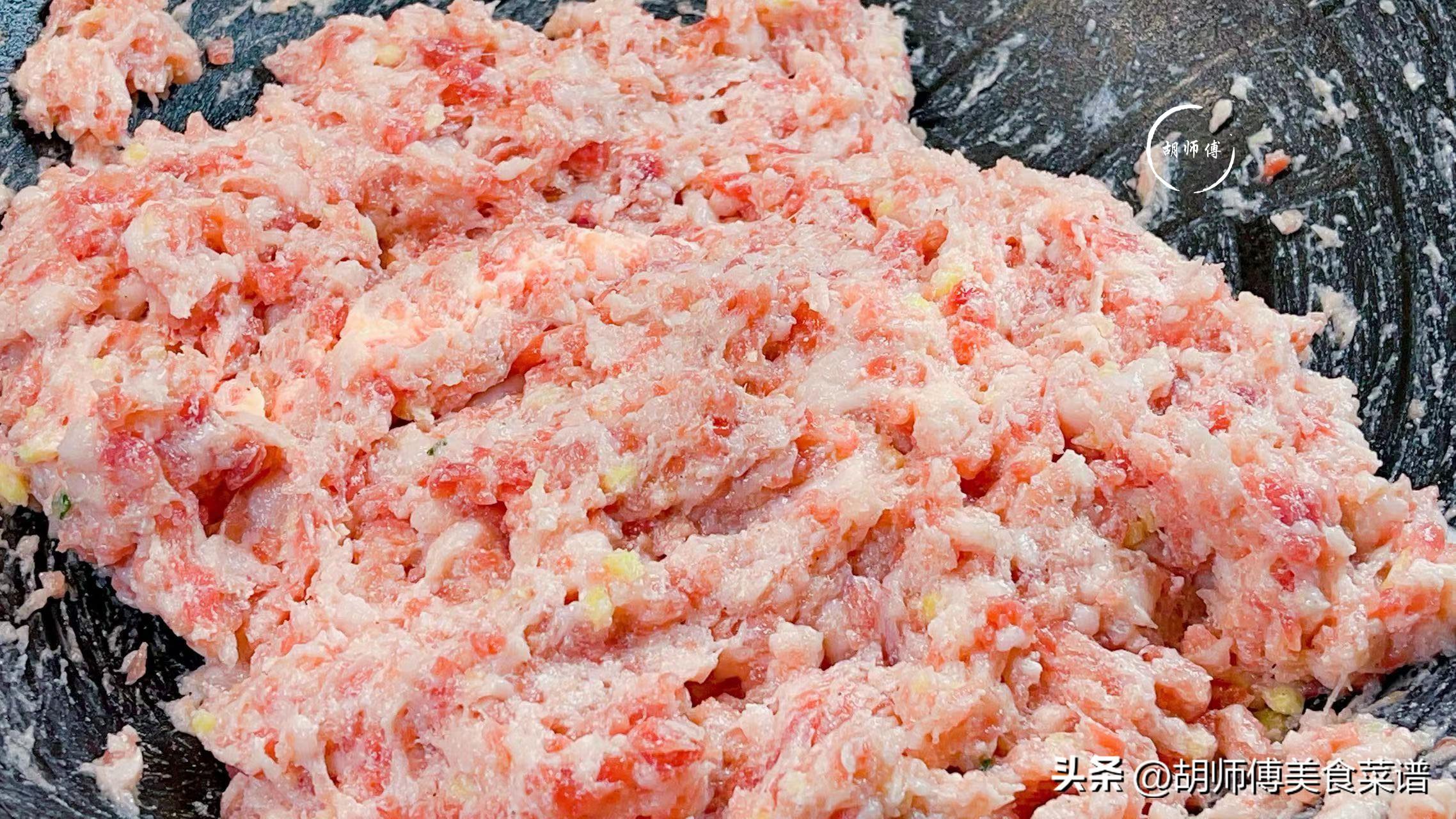 第一步:把肉末、雞蛋、麪粉、薑末、胡椒粉、食鹽全部都放入盆中,然後不斷朝一個方向攪拌肉末,大概攪拌15分鐘左右,肉比較有勁道了,就說明肉攪拌好了。
