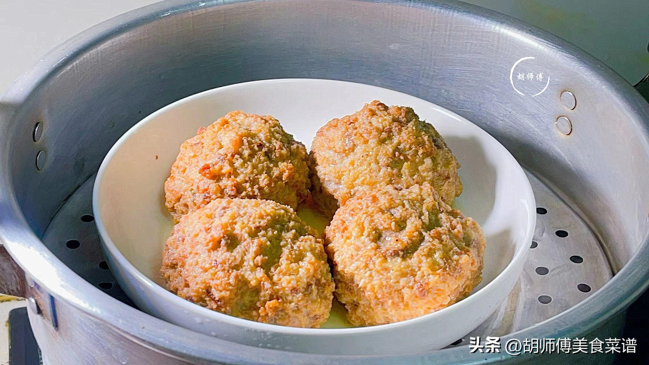 第三步:把炸好的肉丸放入蒸鍋中,大火將丸子蒸25分鐘,多蒸一會兒,肉丸喫着會更軟爛。