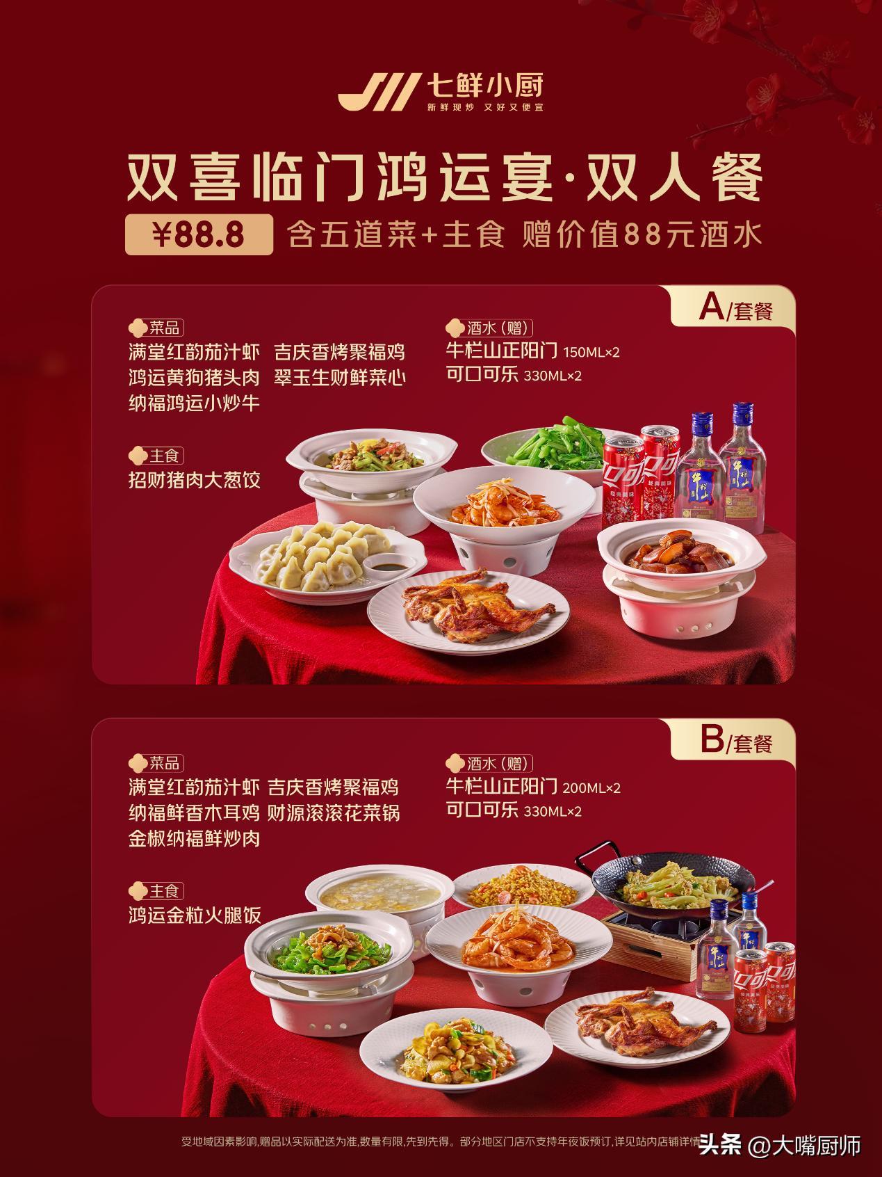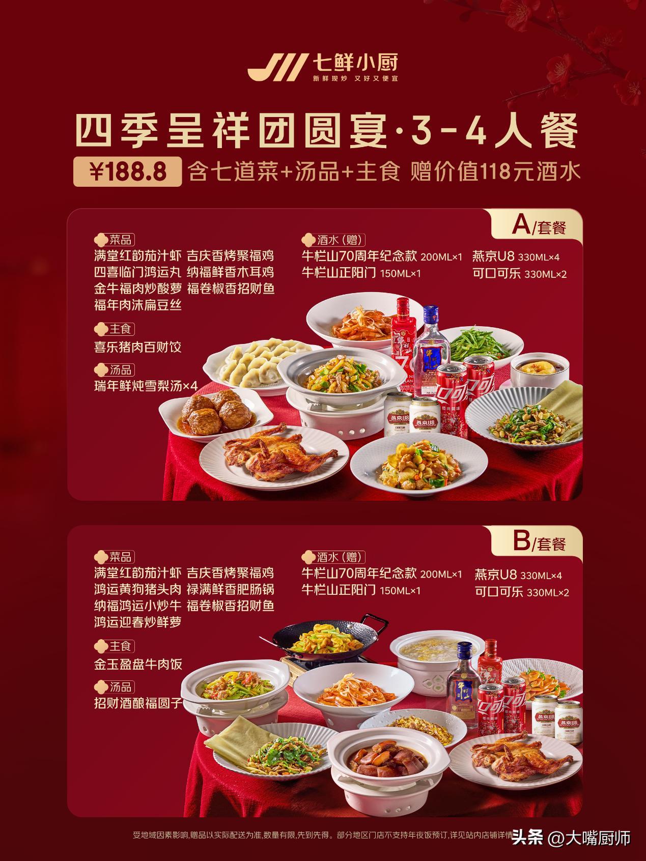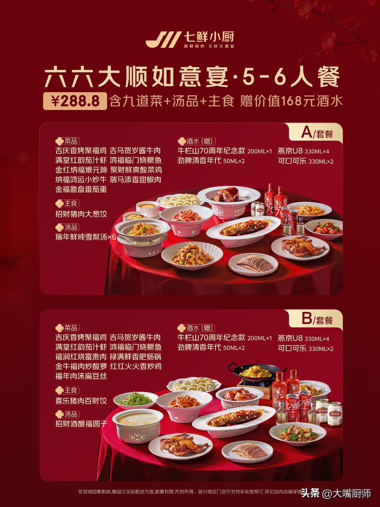 京東七鮮小廚推出年夜飯套餐,即日起至2月14訂,訂餐送百元好酒