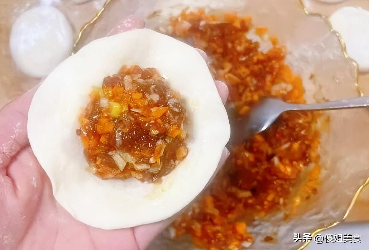 我婆婆做的是胡蘿蔔豬肉餡包子,胡蘿蔔是自家種的,平時這些胡蘿蔔的喫法可多了:簡單蒸着喫,清甜軟糯;切成丁煮進粥裏,粥都染上漂亮的橙黃色;當然,最經典的還是包包子、包餃子!那味道,真的絕了。