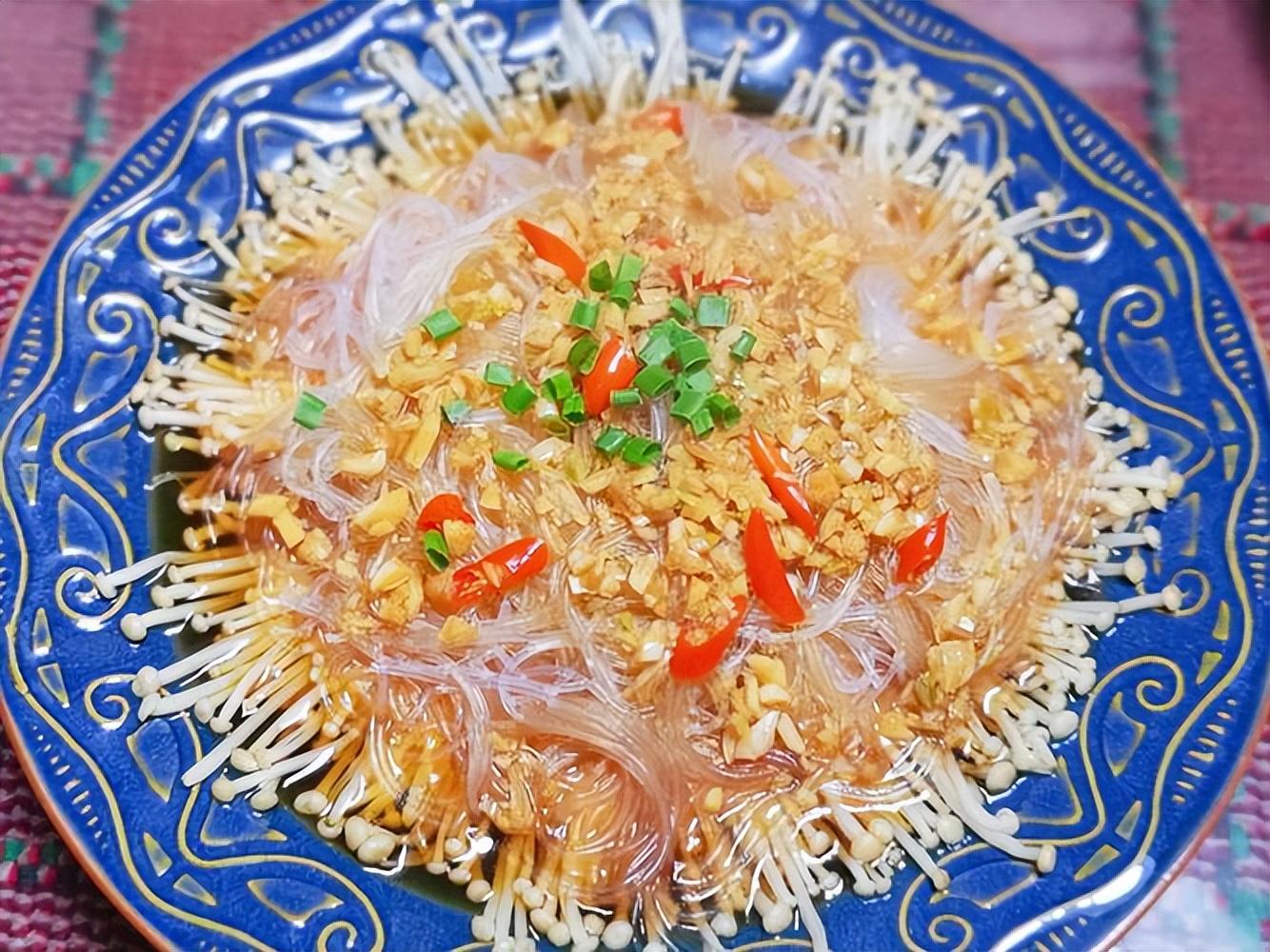 推薦喫法,蒜蓉粉絲蒸金針菇。這道菜色香味俱全,也寓意着新一年財富如繁星般閃耀,生活富足。