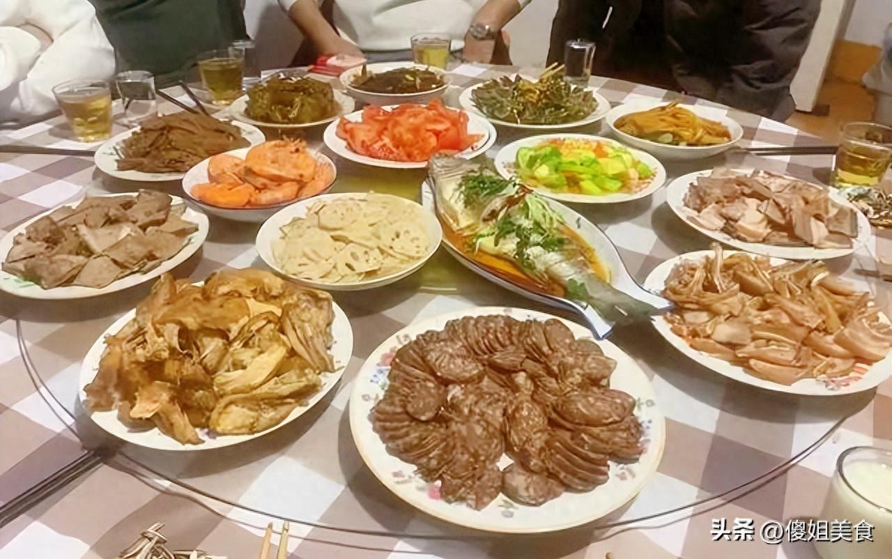 在不少北方地區,春節宴席的“硬核”程度,從一桌子菜就能看出來——放眼望去,全是肉。就像圖裏的這桌菜,紅燒魚、滷味拼盤、炸丸子、醬肘子……幾乎看不到半根青菜,連點綴的蔥花都成了“稀有物種”。