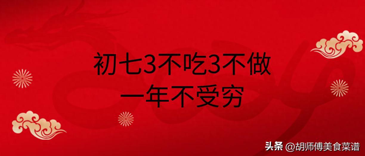 大年初七“人日”,老人說:“初七3不喫3不做,一年不受窮”,3不喫指的是“不喫帶血的食物、不喫掉渣的食物、不喫油膩食物”,3不做指的是“不能動剪刀和針、不能說喪氣話、不能做體力活”老傳統別丟了!如果今天的文章對您有幫助,請點一個關注,點一個贊,這是對我最大的支持。後續美食家老胡還會給大家講解更多美食和傳統習俗,最後感謝大家的觀看。